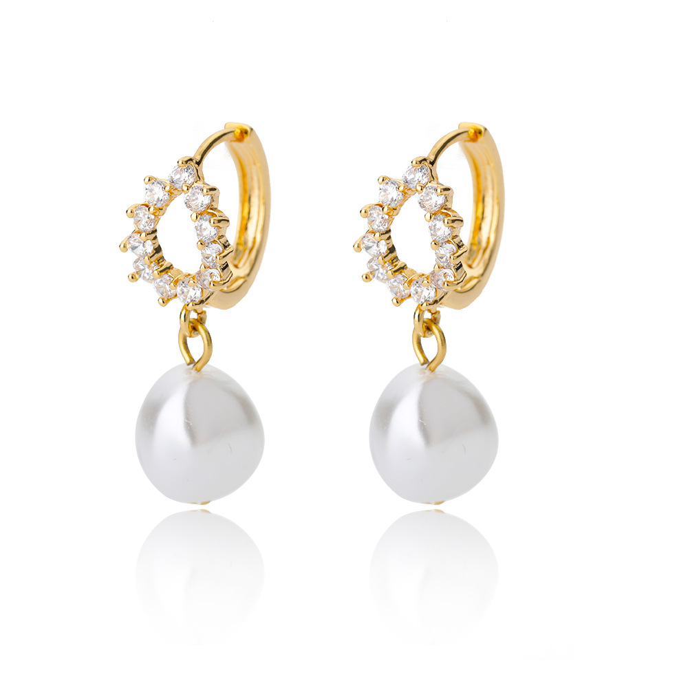 Messing Tropfen Ohrring, mit Natürliche kultivierte Süßwasserperlen, goldfarben plattiert, verschiedene Stile für Wahl & für Frau, earring length 25-30mm, verkauft von Paar