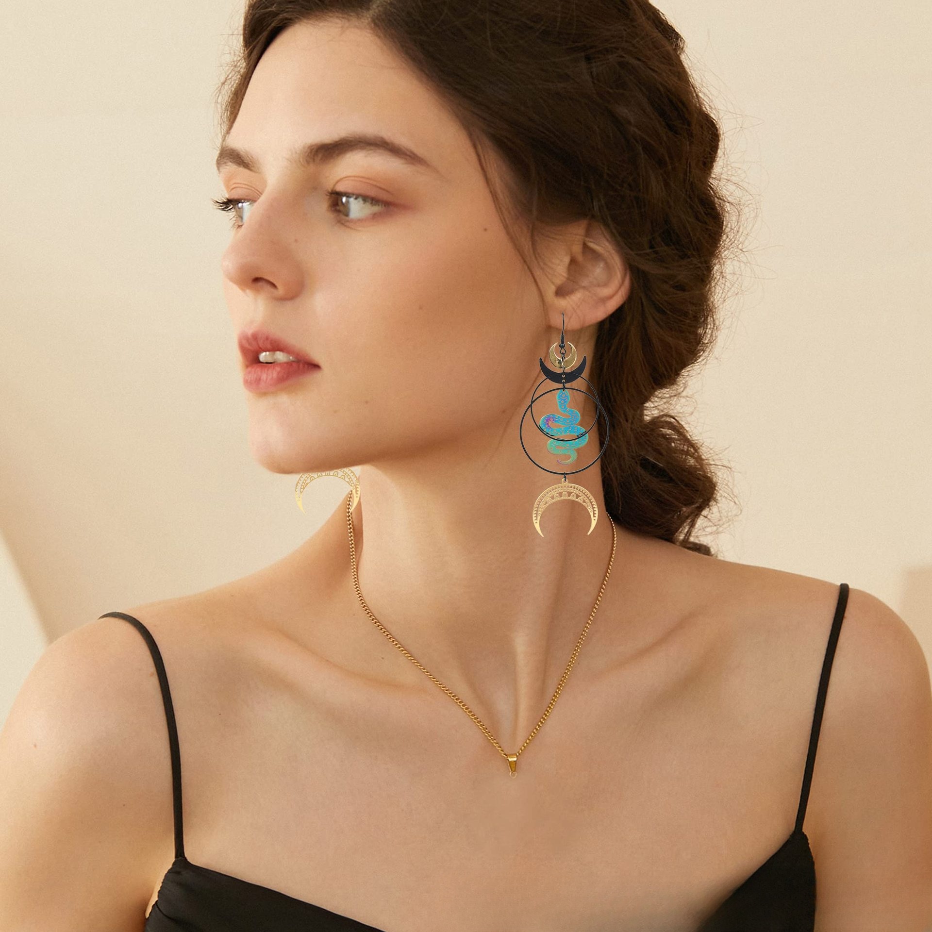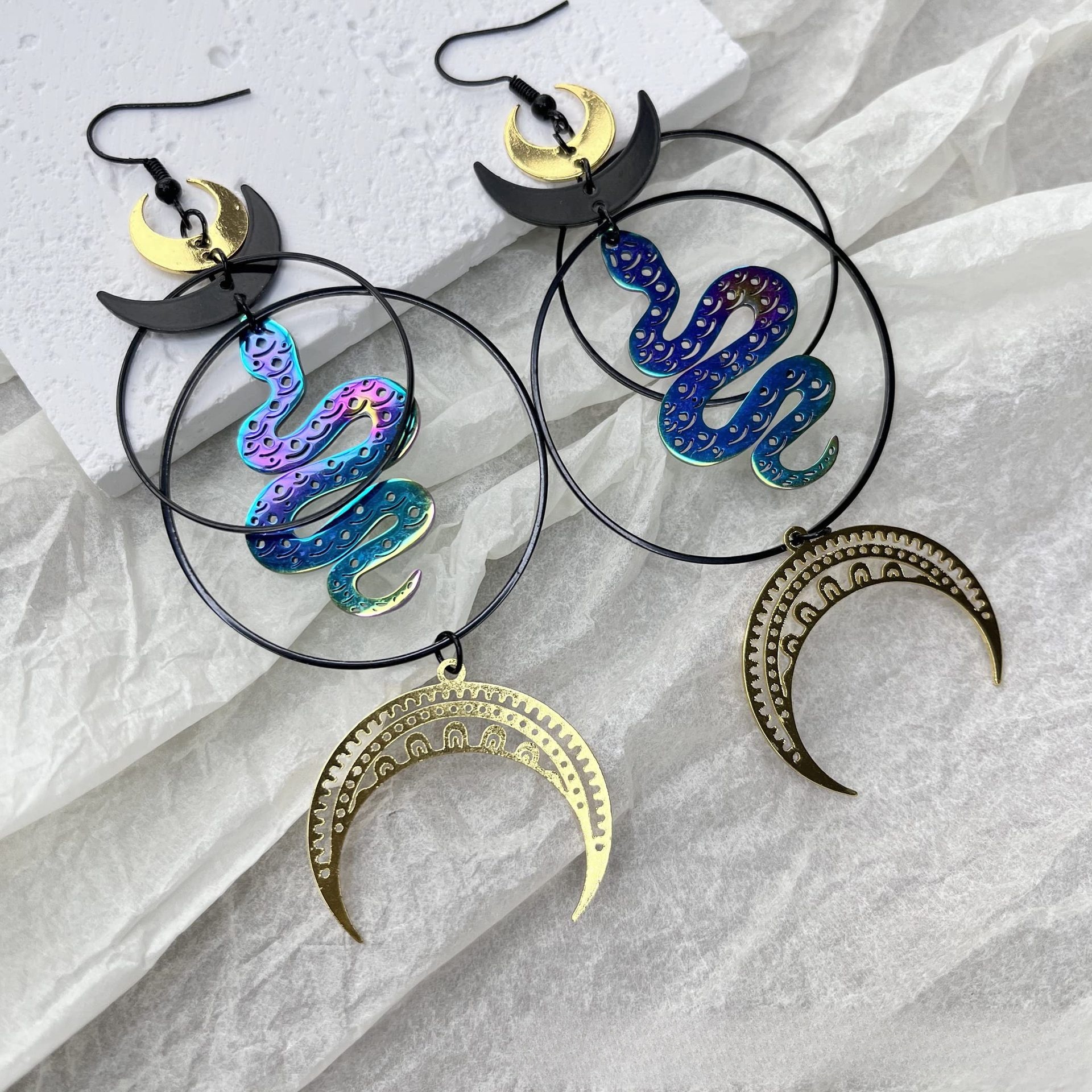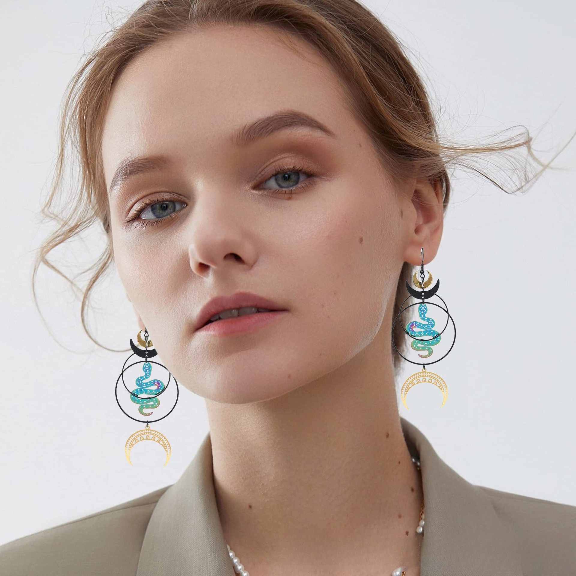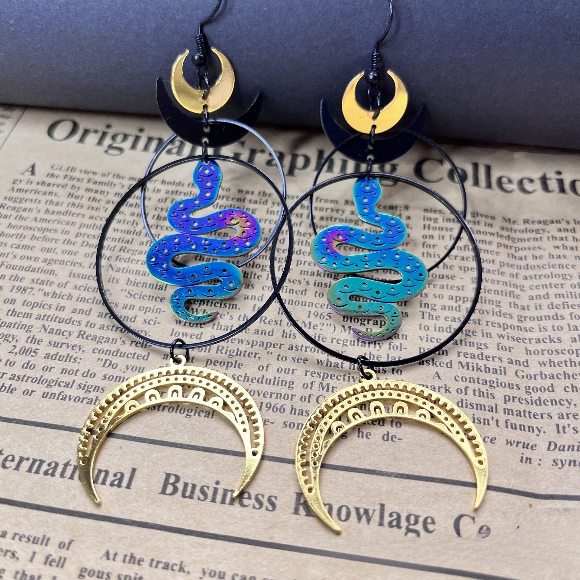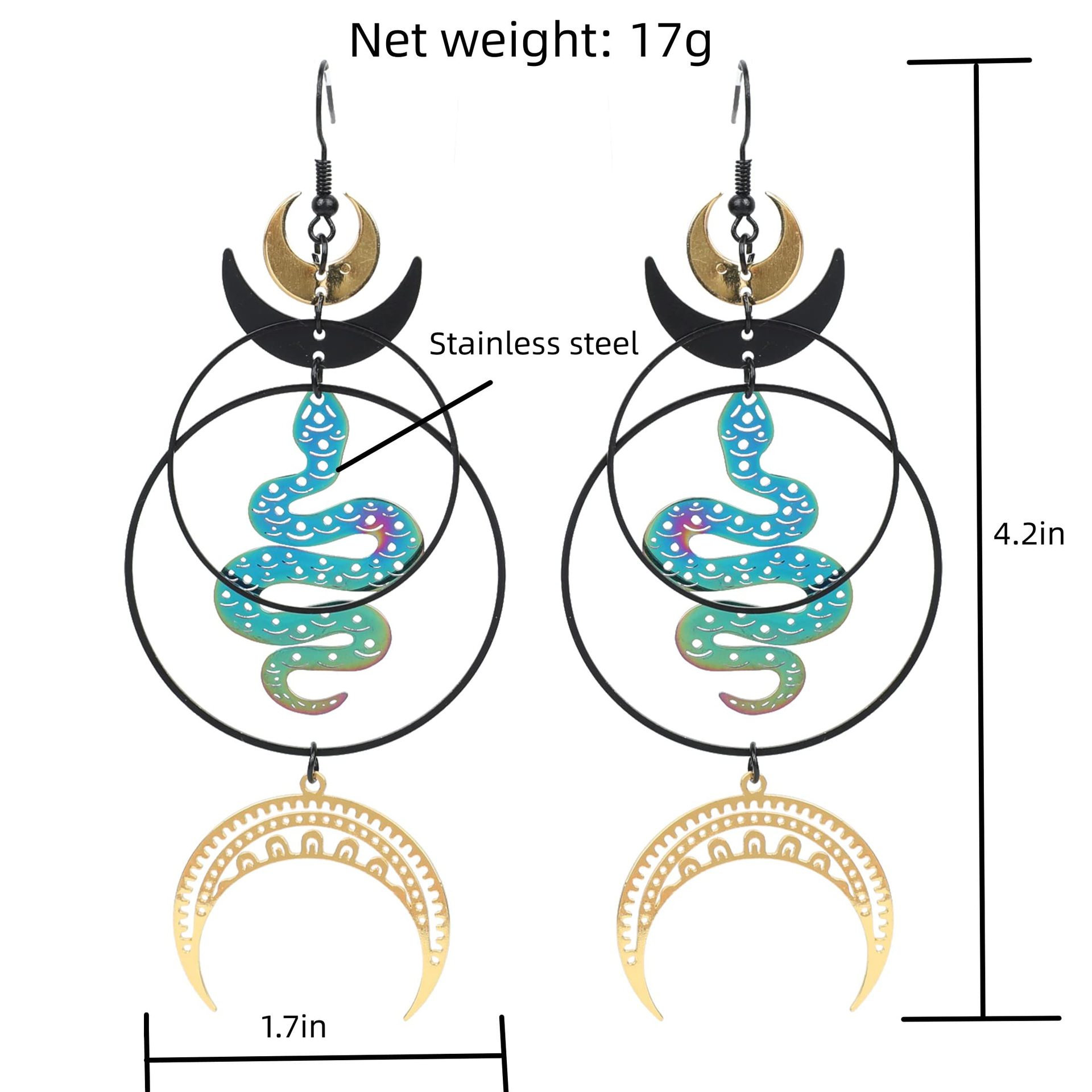 Messing Tropfen Ohrringe, mit 304 Edelstahl, Schlange, goldfarben plattiert, Modeschmuck, gemischte Farben, frei von Nickel, Blei & Kadmium, verkauft von Paar