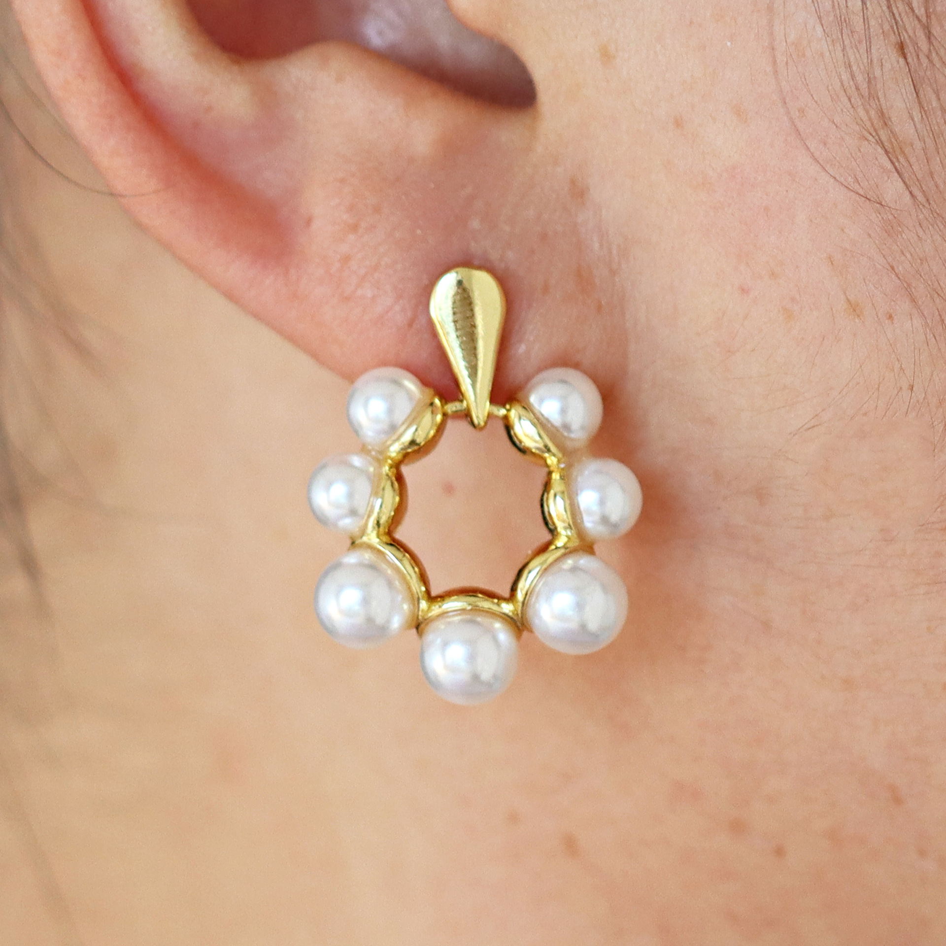 Messing Tropfen Ohrringe, mit Kunststoff Perlen, vergoldet, Modeschmuck & für Frau, verkauft von Paar