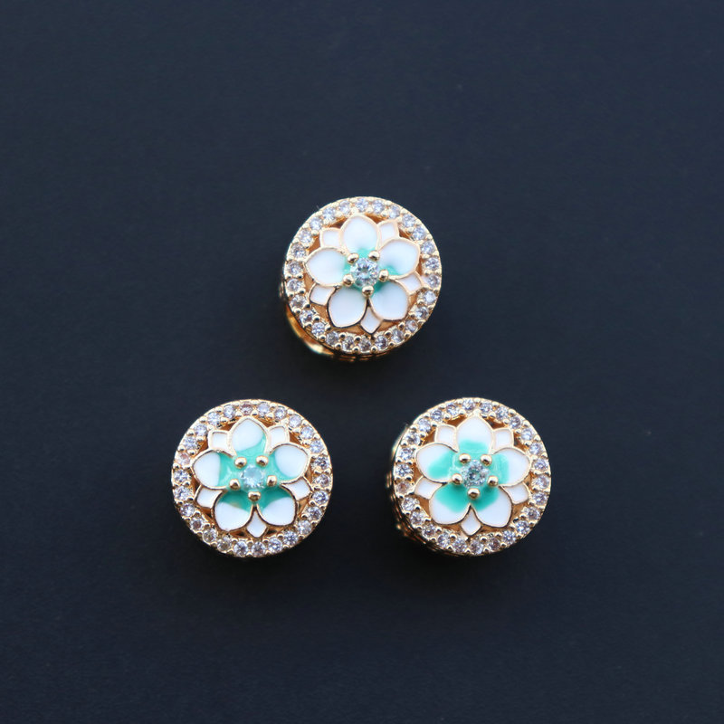 Messing Zwischenperlen, plattiert, DIY & Micro pave Zirkonia & Emaille, gemischte Farben, 11mm, Innendurchmesser:ca. 4.5mm, verkauft von PC