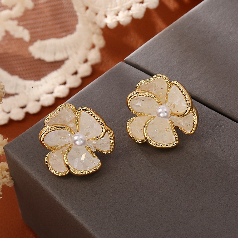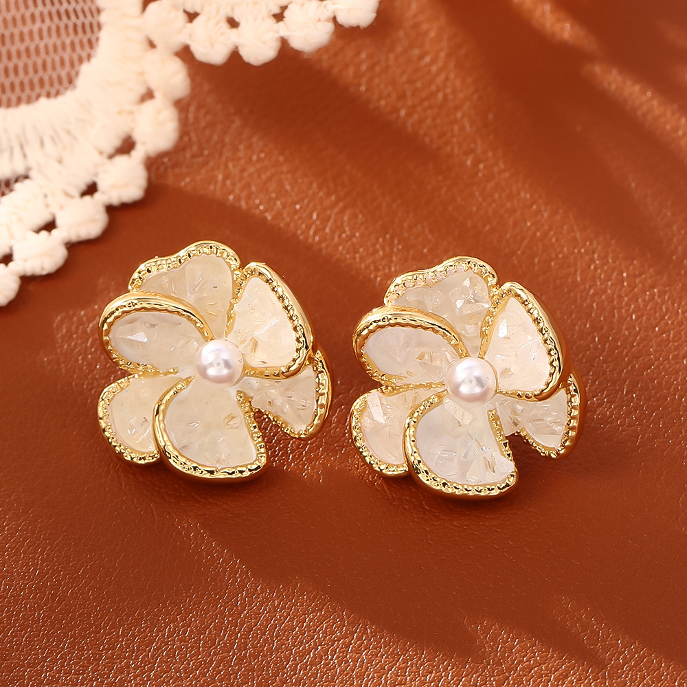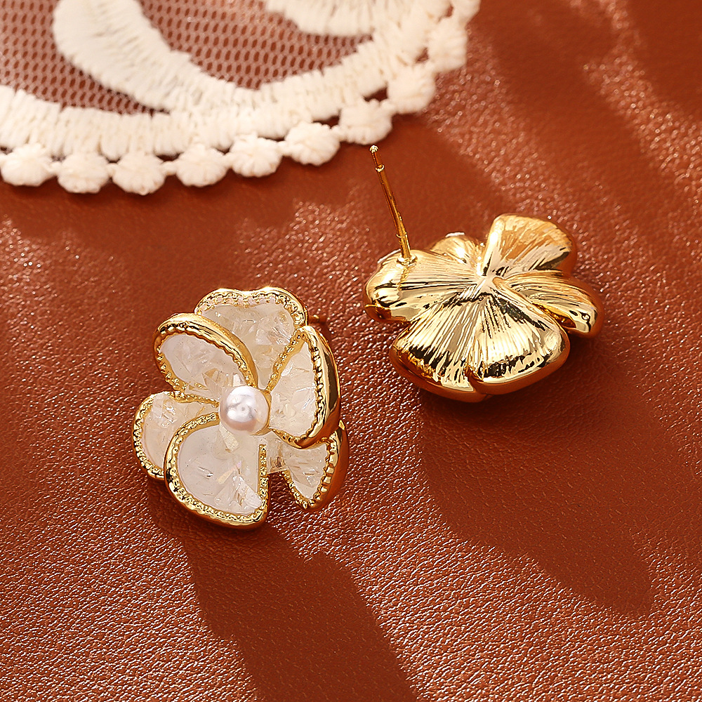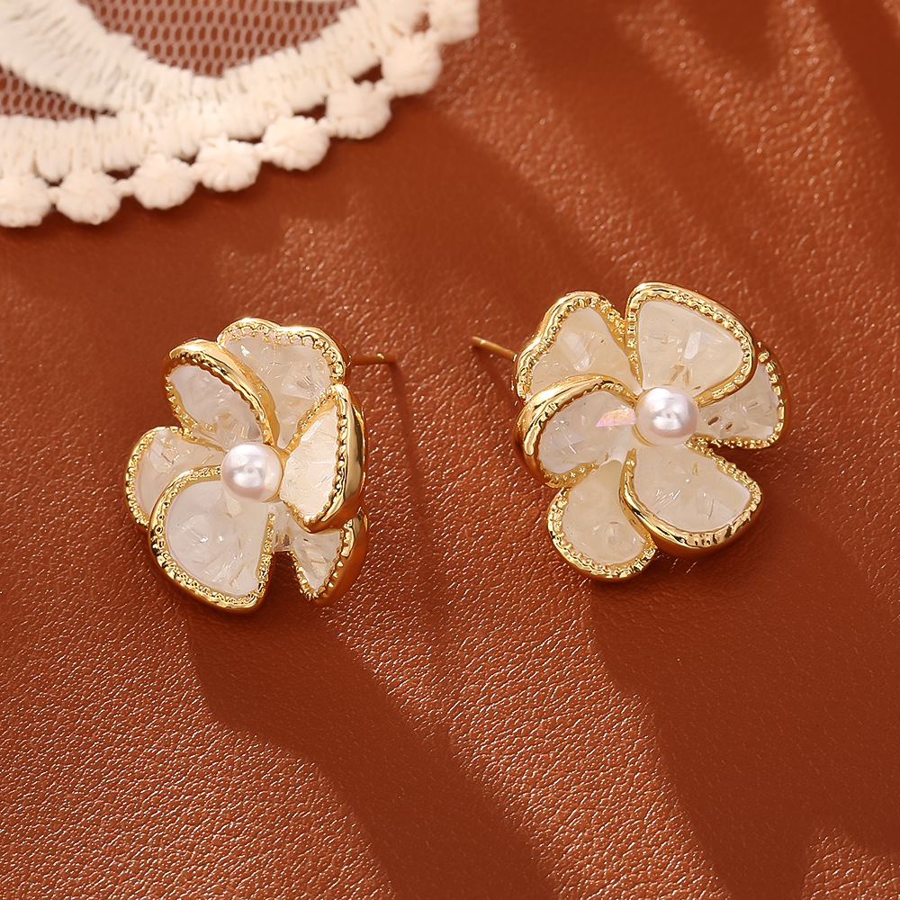 Muschel Ohrringe, Messing, mit Süßwassermuschel & Kunststoff Perlen, Blume, vergoldet, Modeschmuck & für Frau, verkauft von Paar