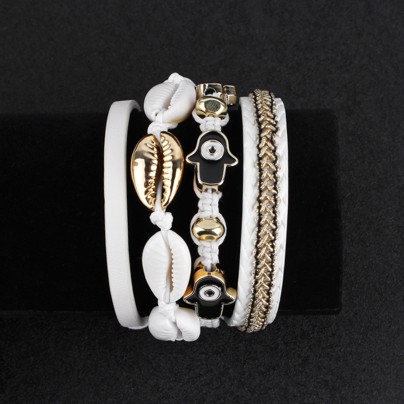 1:Shell bracelet2:Palm eye bracelet3:White leather bracelet4:White embossed leather bracelet5:4-piece bracelet