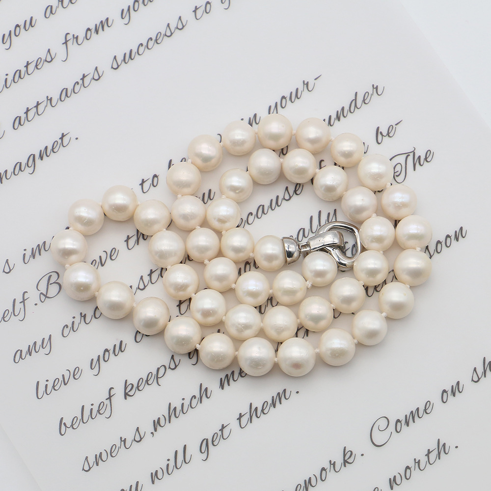 Natürliche Süßwasserperlen Halskette, Natürliche kultivierte Süßwasserperlen, mit 304 Edelstahl, rund, Modeschmuck, weiß, 7-8mm, verkauft per 43 cm Strang