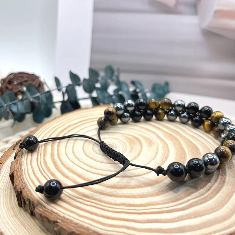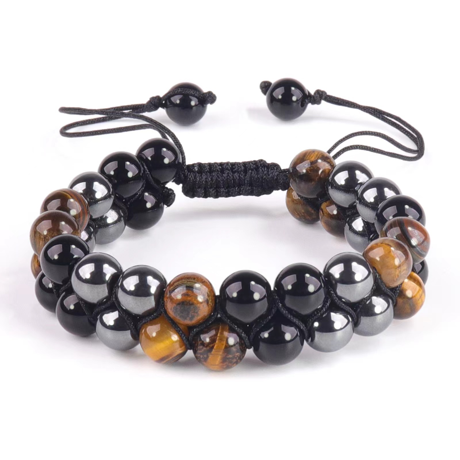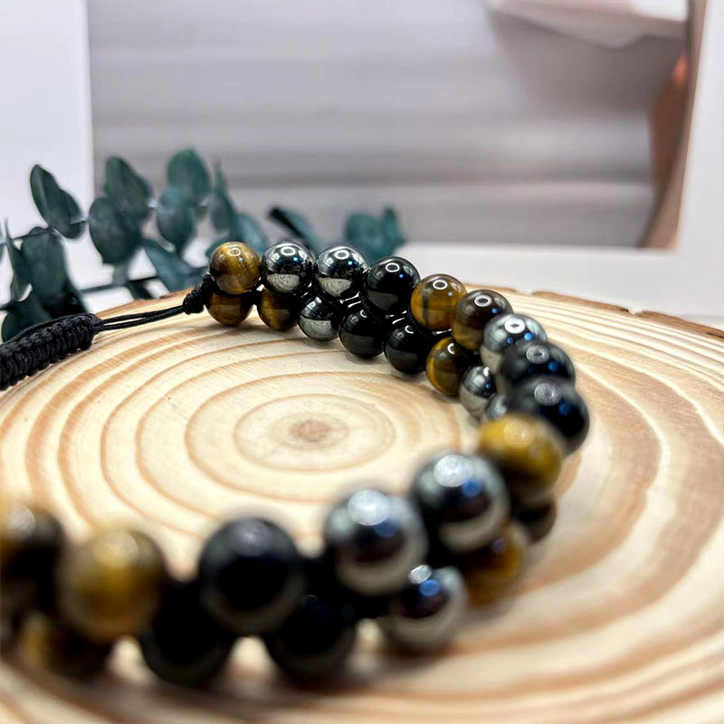 Obsidian Armband, mit Schwarz+Magnet+Stein & Wachsschnur & Tigerauge, rund, handgemacht, Doppelschicht & einstellbar & für den Menschen, beads length 8mm, Länge ca. 7-10 ZollInch, verkauft von PC