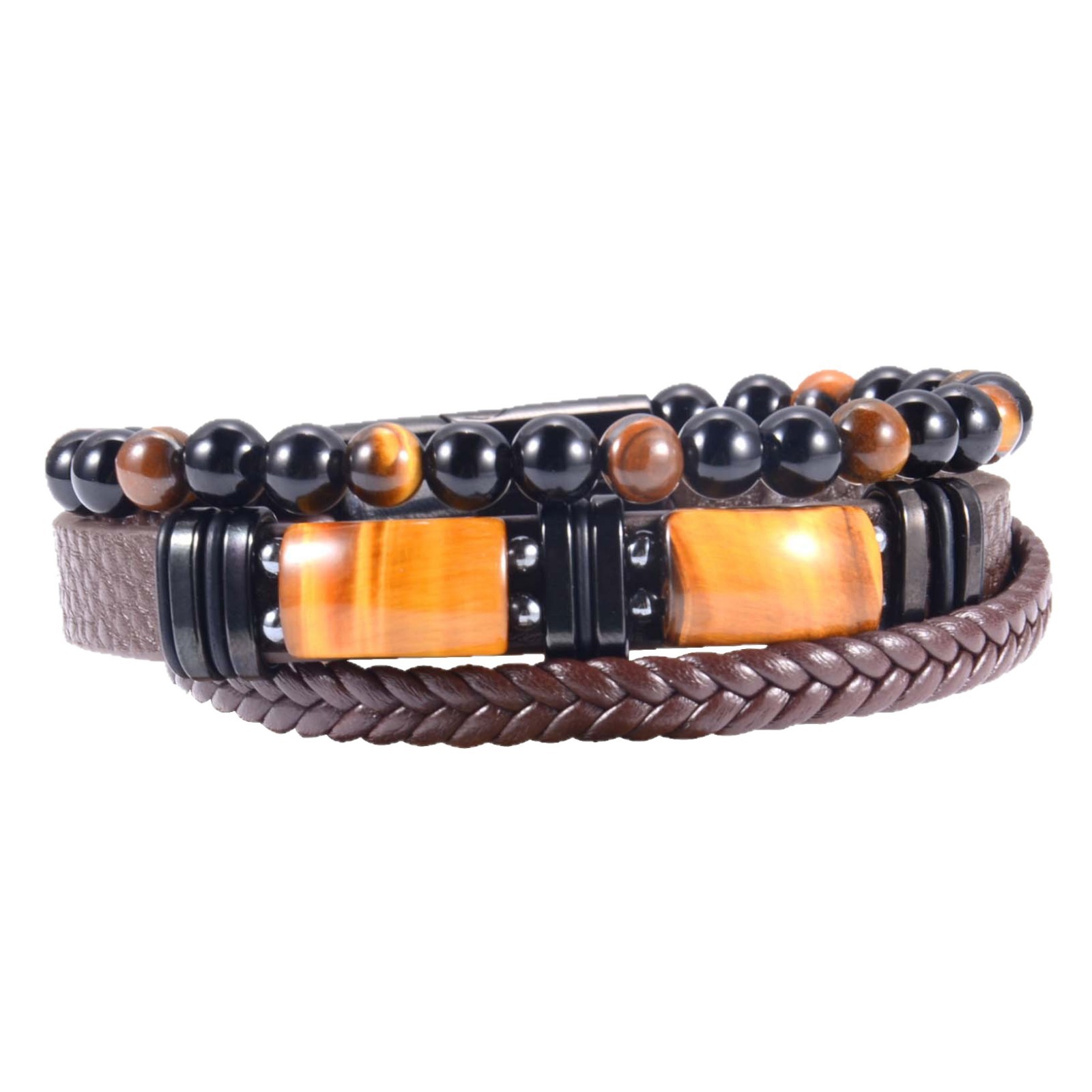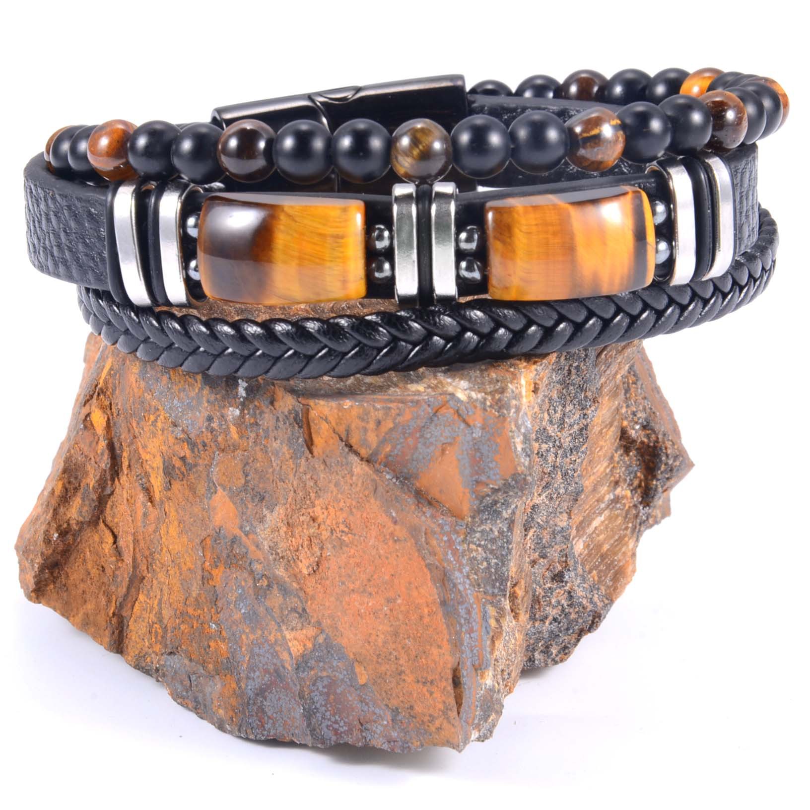 PU Leder Armband, mit Obsidian & Tigerauge & Schwarzer Achat & 304 Edelstahl, unisex & verschiedene Größen vorhanden, keine, verkauft von PC