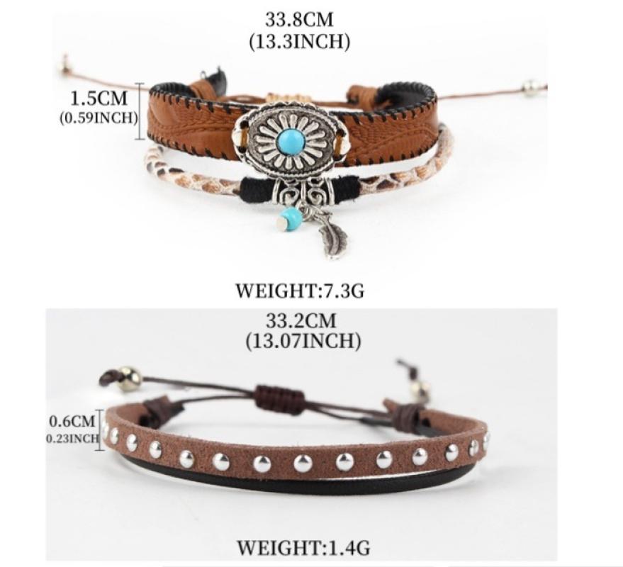 1:Rivet adjustable bracelet2:PU adjustable bracelet3:2 piece set