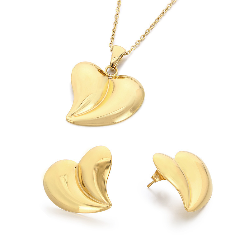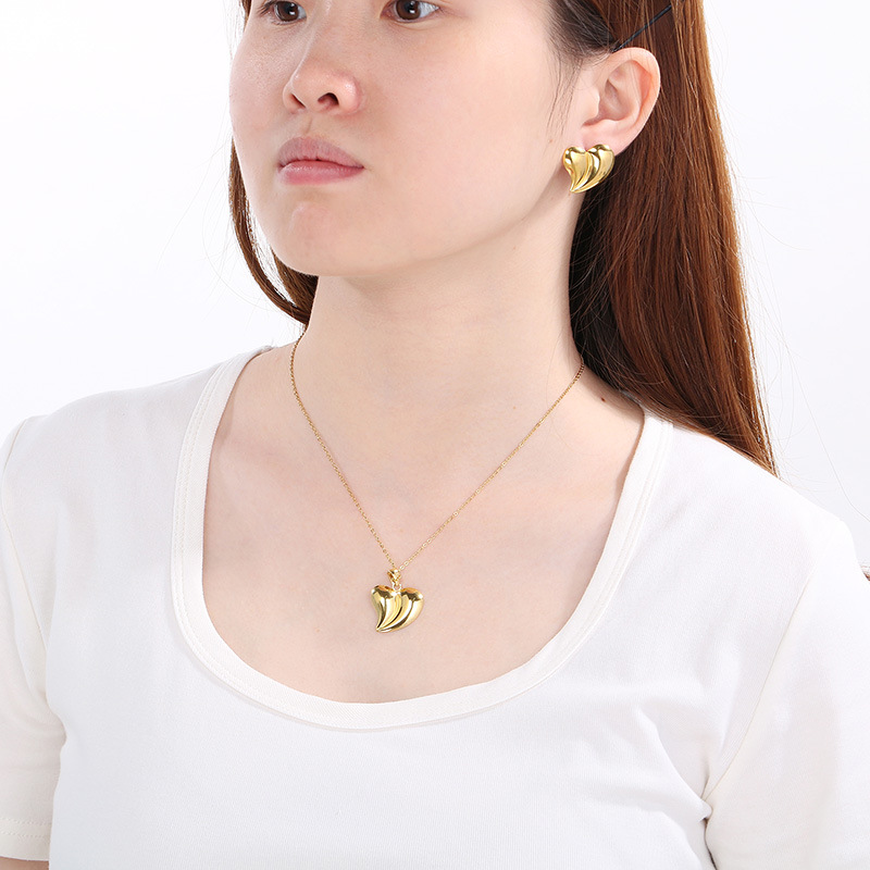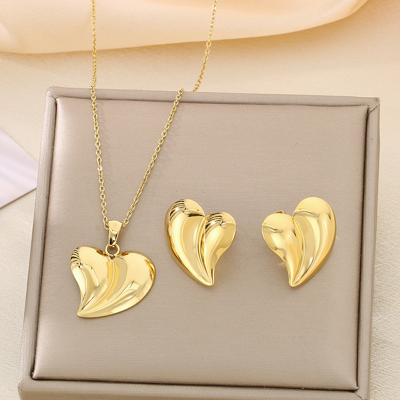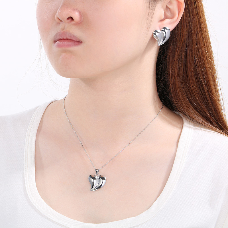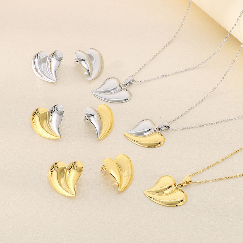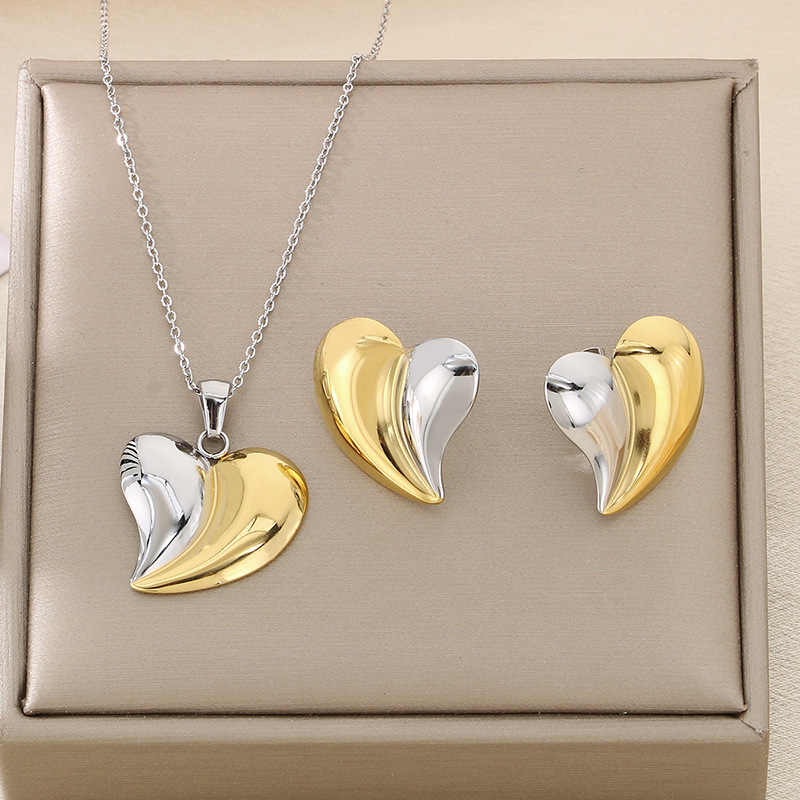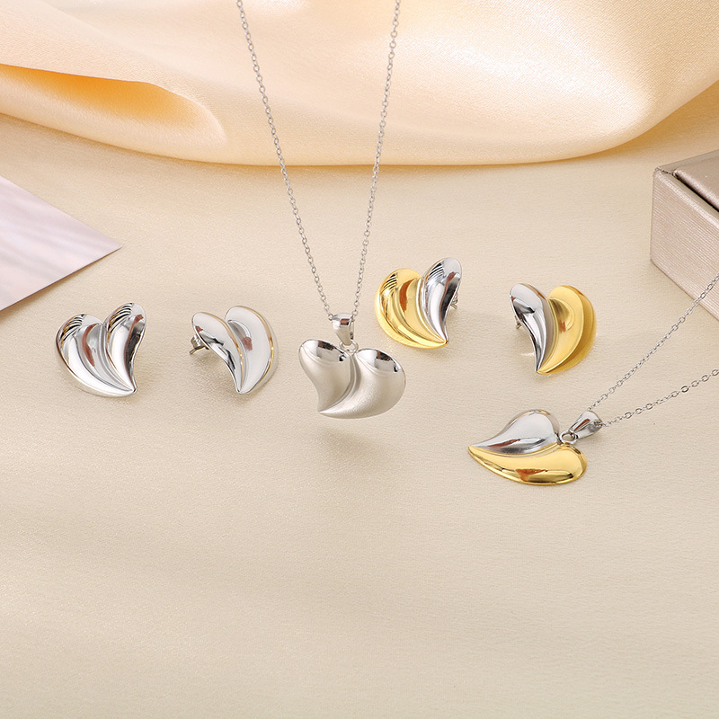 Edelstahl Schmucksets, Stud Ohrring & Halskette, 304 Edelstahl, Herz, plattiert, verschiedene Stile für Wahl & für Frau, keine, verkauft von PC