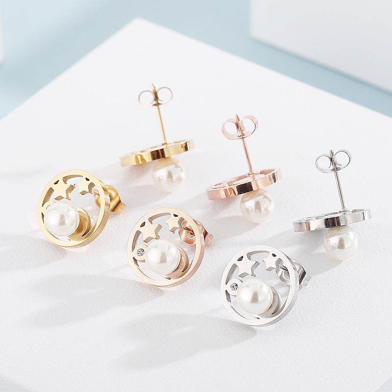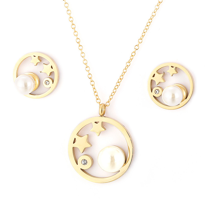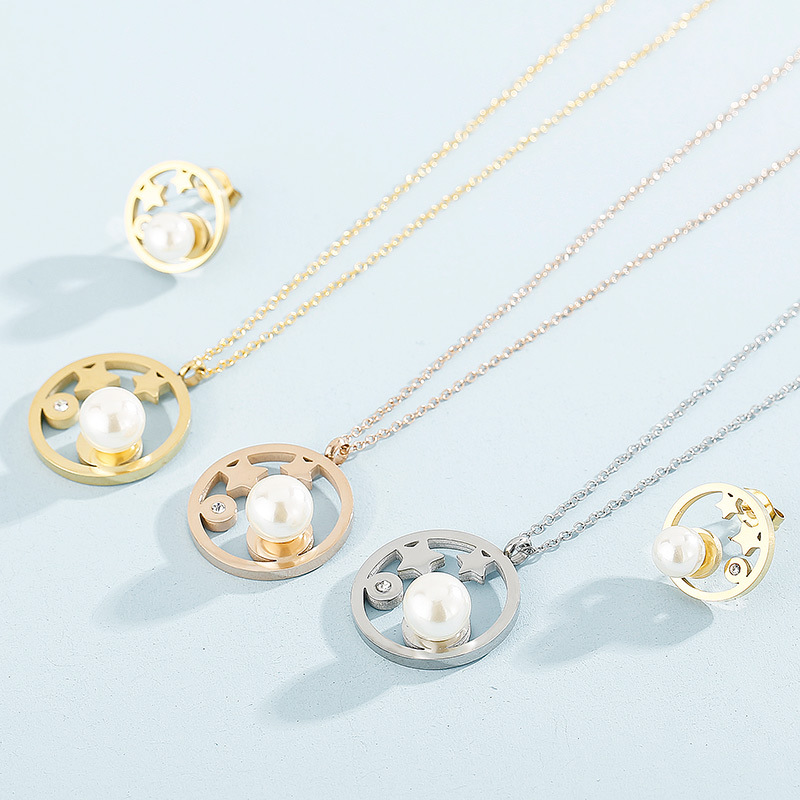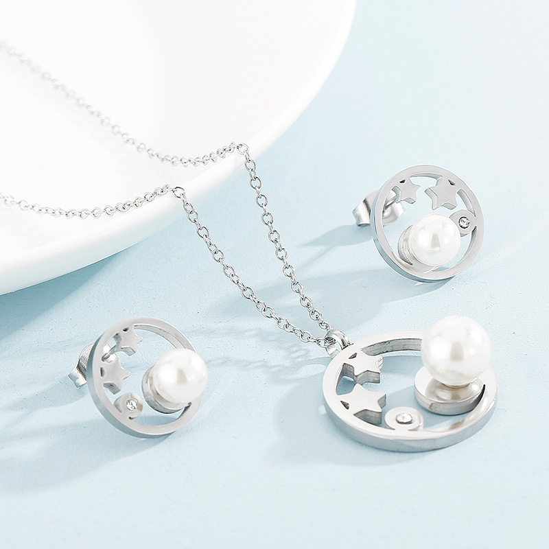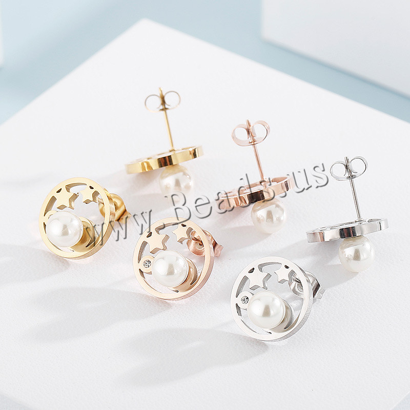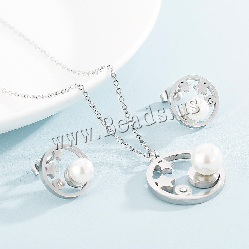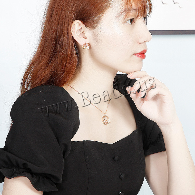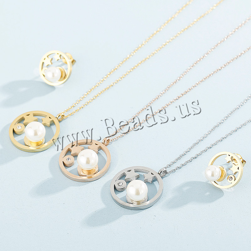 Edelstahl Schmucksets, Stud Ohrring & Halskette, 304 Edelstahl, mit Kunststoff Perlen, Modeschmuck & für Frau, keine, verkauft von setzen