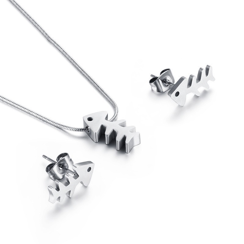Edelstahl Schmucksets, Stud Ohrring & Halskette, 304 Edelstahl, Fischgräte, Modeschmuck & für Frau, keine, verkauft von setzen