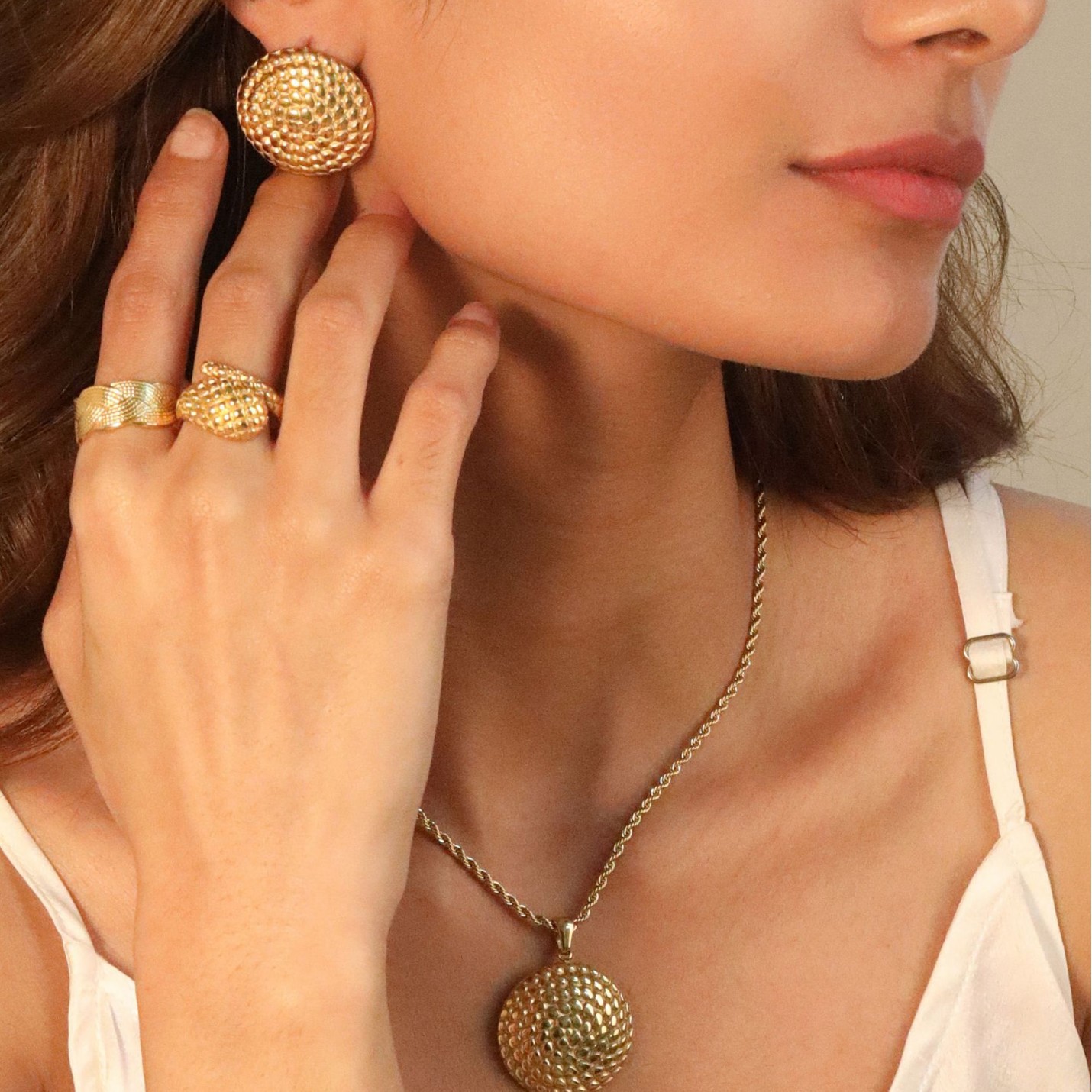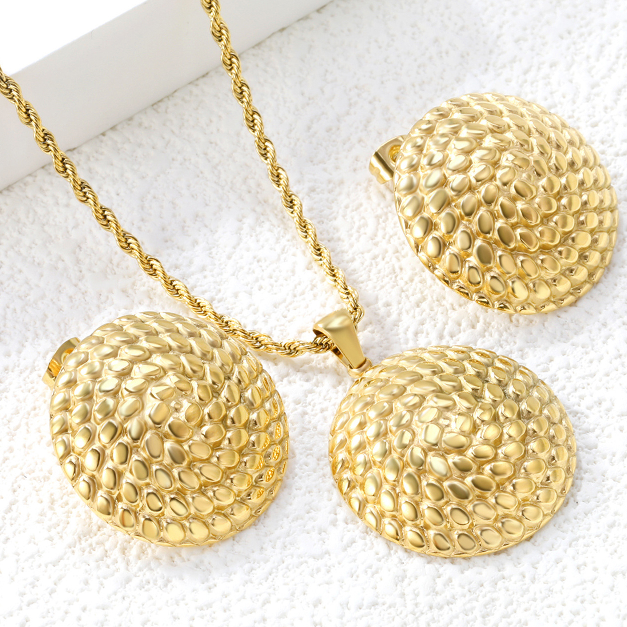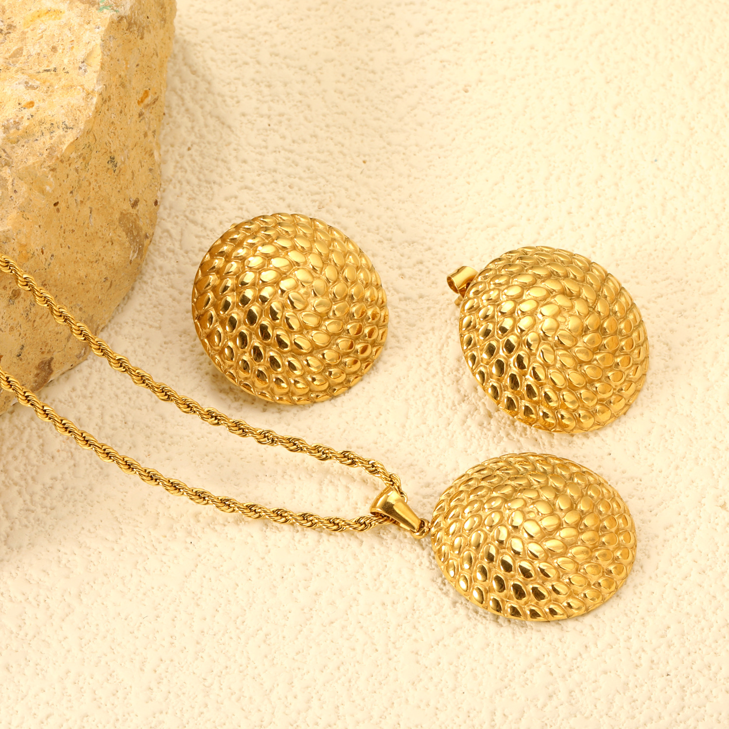 Edelstahl Schmucksets, Stud Ohrring & Halskette, 304 Edelstahl, rund, 18K vergoldet, 2 Stück & Modeschmuck & für Frau, verkauft von setzen