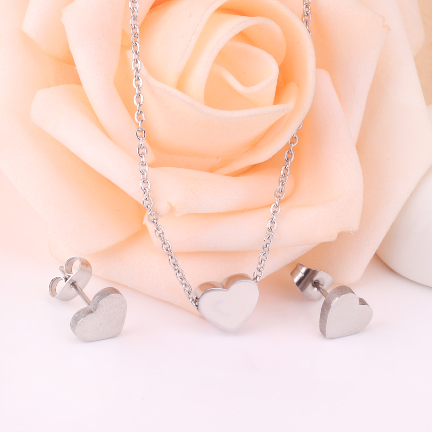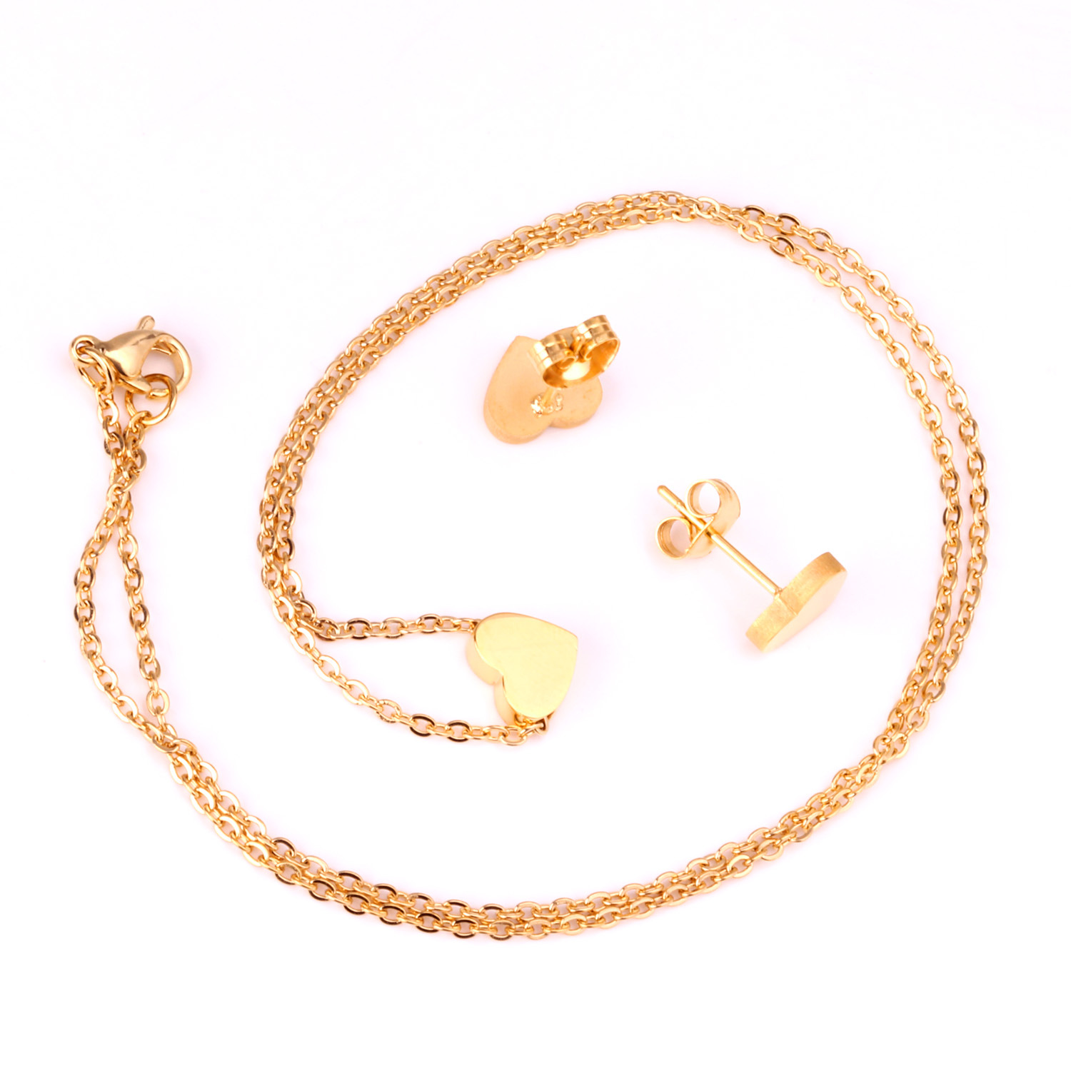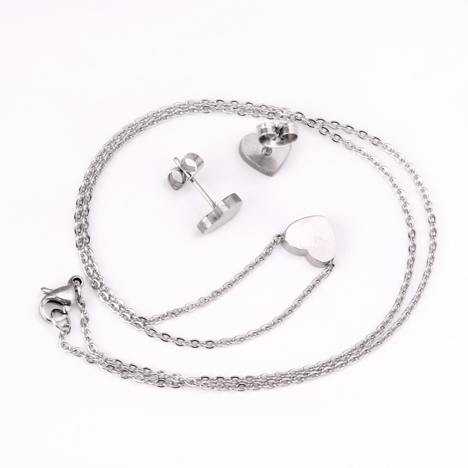 Edelstahl Schmucksets, Stud Ohrring & Halskette, 304 Edelstahl, Herz, plattiert, 2 Stück & Modeschmuck & für Frau, keine, verkauft von setzen