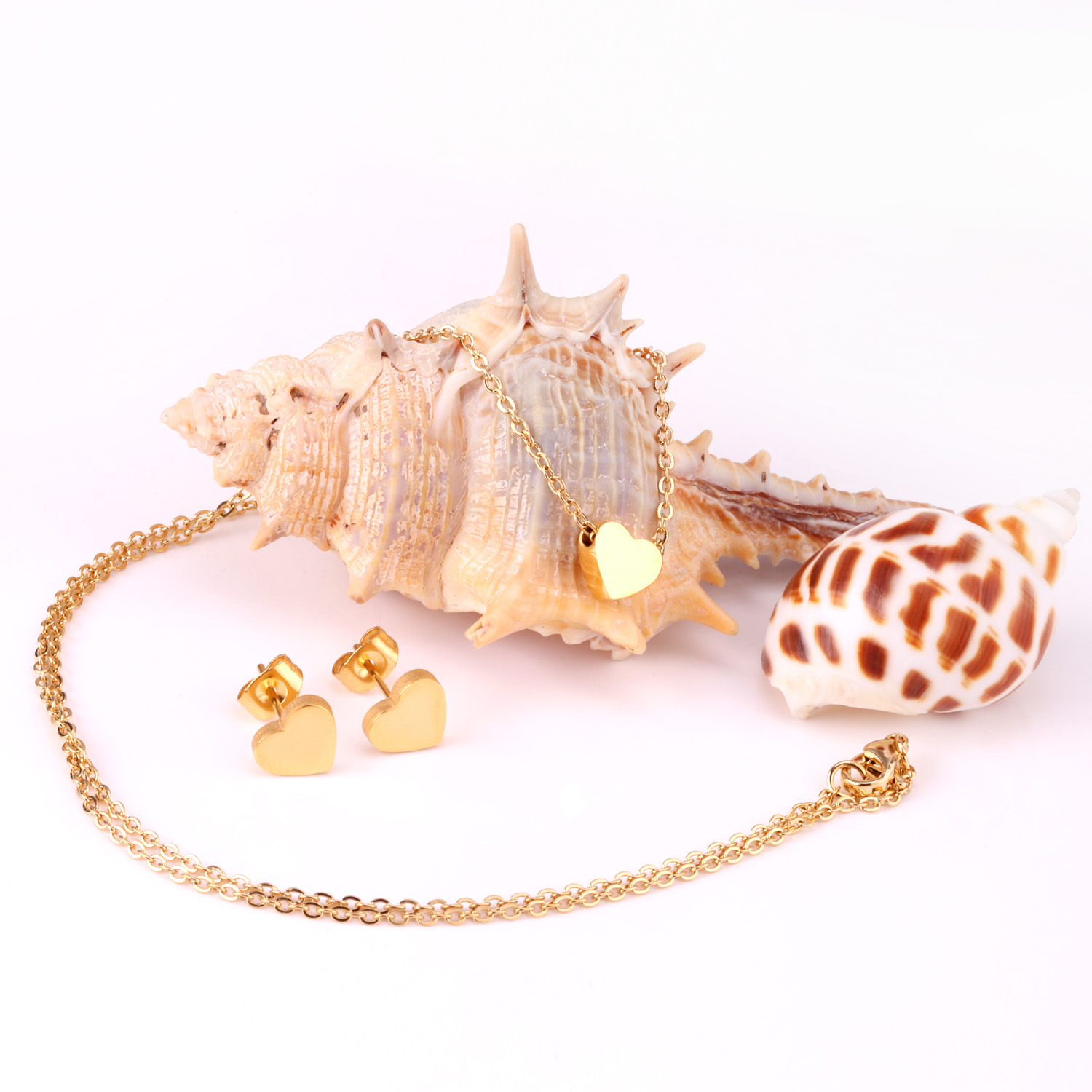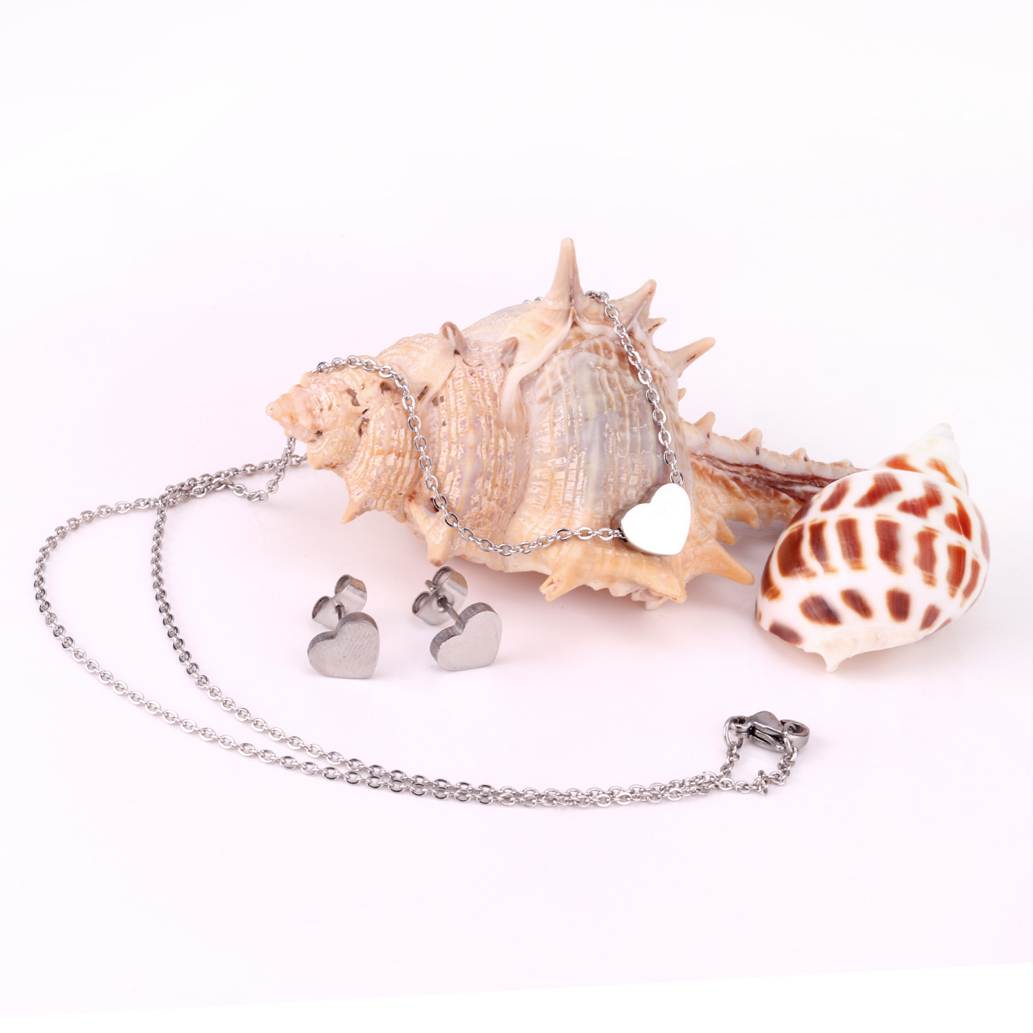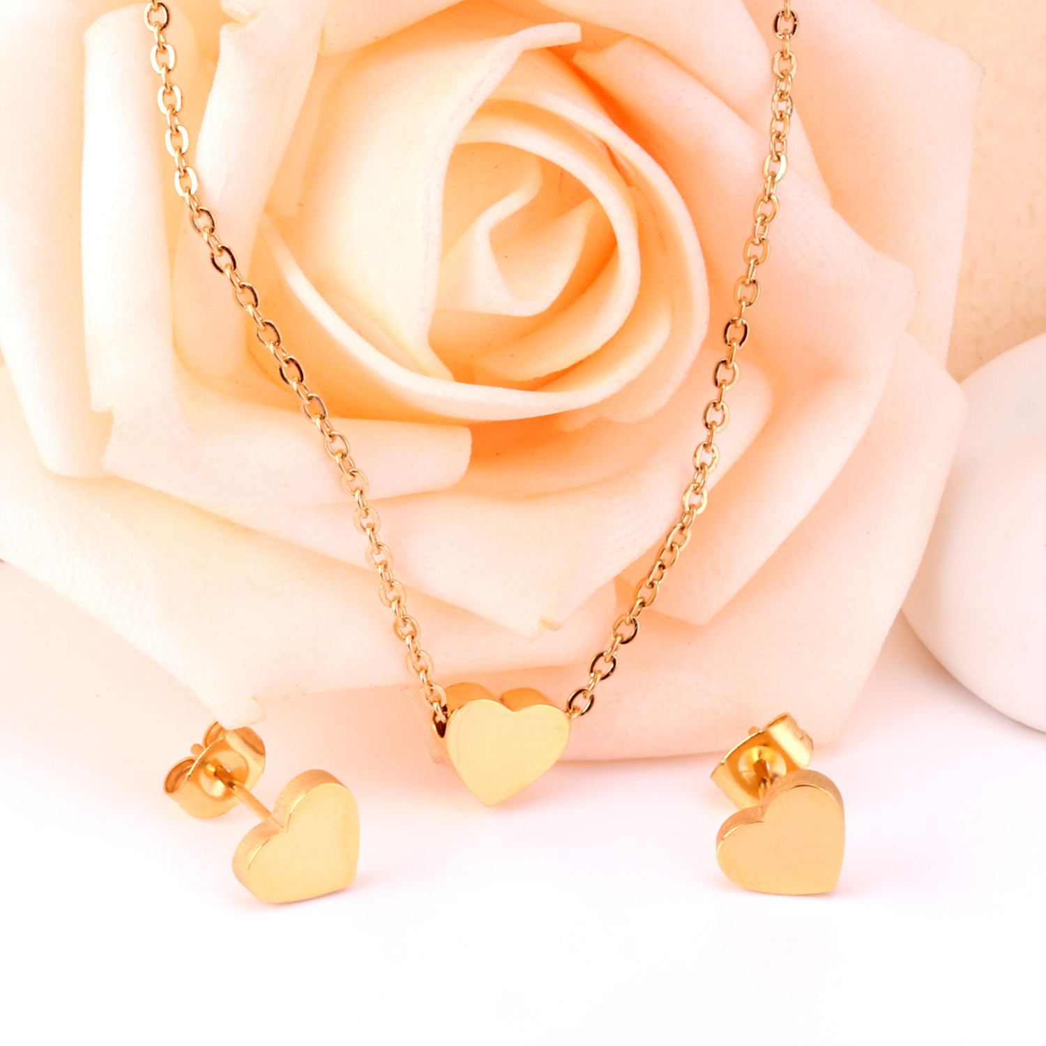 Edelstahl Schmucksets, Stud Ohrring & Halskette, 304 Edelstahl, Herz, plattiert, 2 Stück & Modeschmuck & für Frau, keine, verkauft von setzen