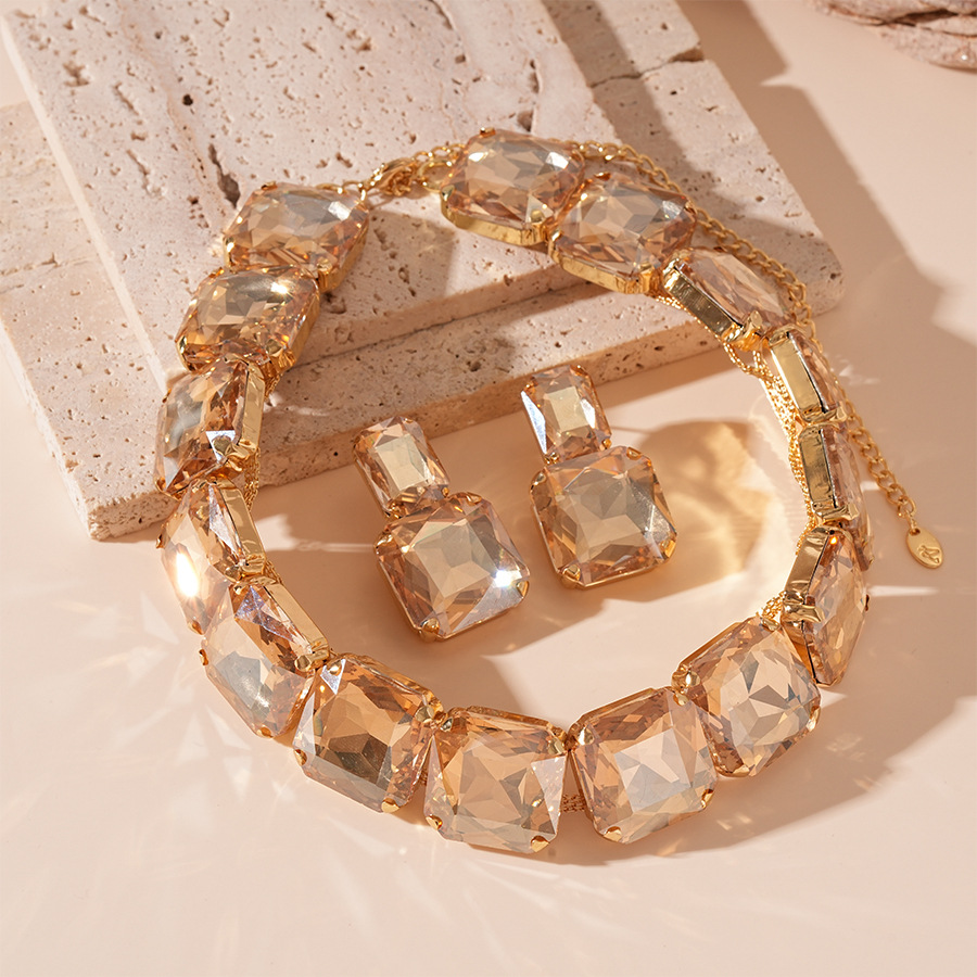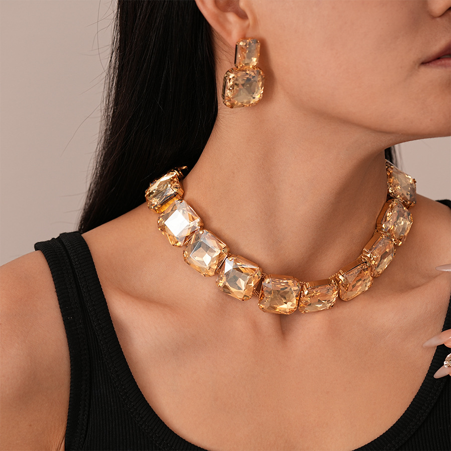 1:Gold diamond square stud earrings necklace2:Silver diamond square stud earrings necklace