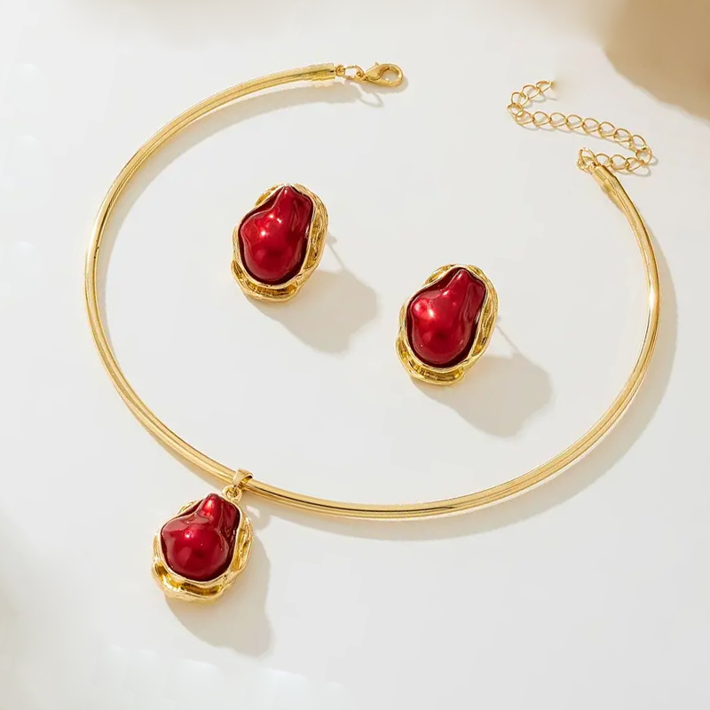 Zinklegierung Schmucksets, Stud Ohrring & Halskette, mit Kunststoff Perlen, Modeschmuck & verschiedene Stile für Wahl & für Frau, keine, verkauft von setzen