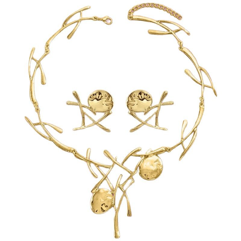 Zinklegierung Schmucksets, Stud Ohrring & KragenHalsband, 2 Stück & für Frau & hohl, keine, verkauft von setzen