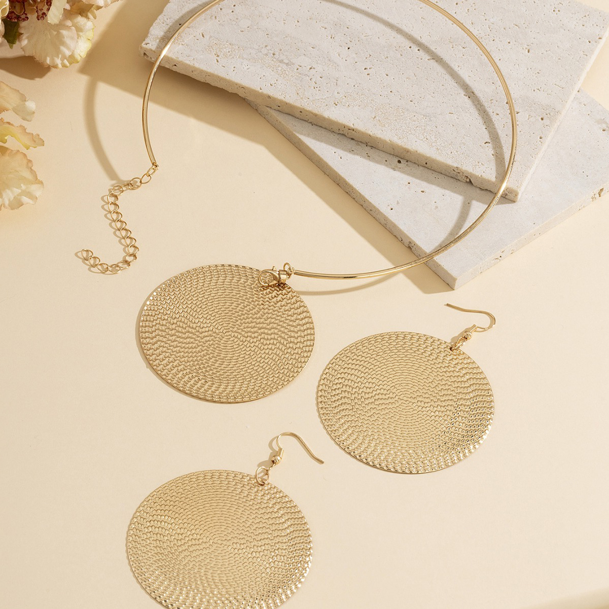 Zinklegierung Schmucksets, KragenHalsband & Ohrring, rund, 2 Stück & Modeschmuck & für Frau, erdgelb, verkauft von setzen