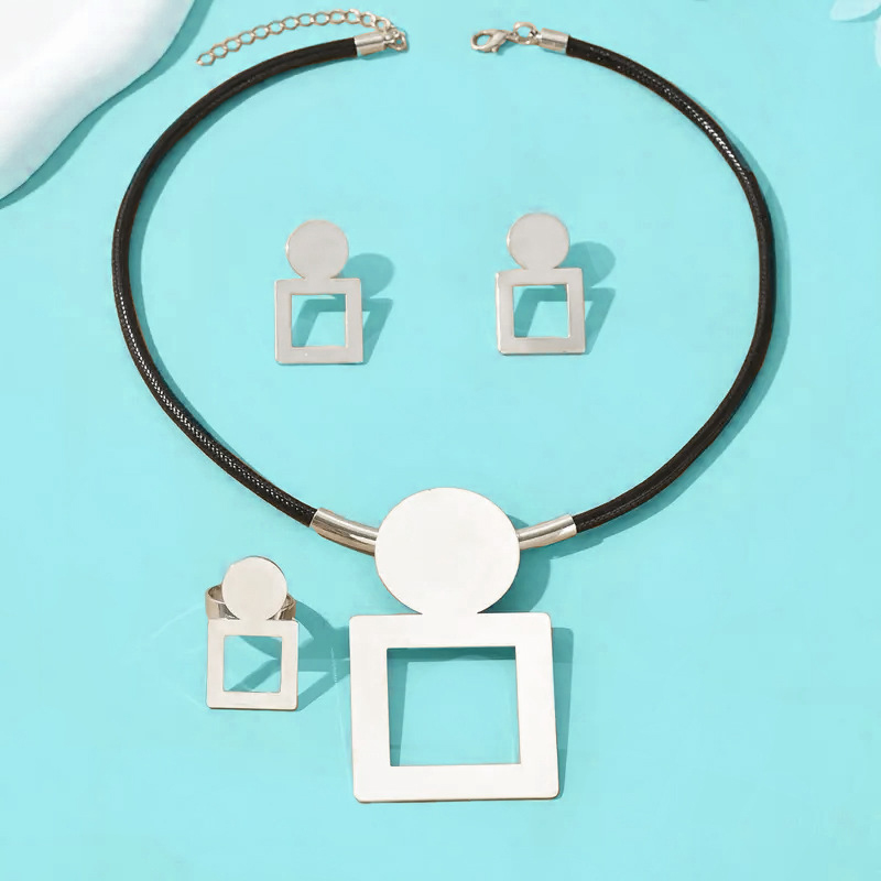 Schmucksets, Stud Ohrring & Fingerring & Halskette, Kunststoff, mit Wachsschnur, drei Stücke & für Frau & hohl, silbergrau, verkauft von setzen