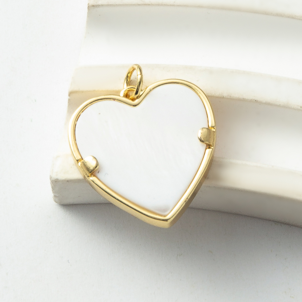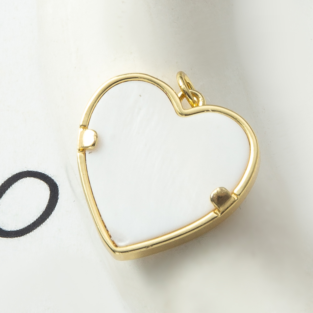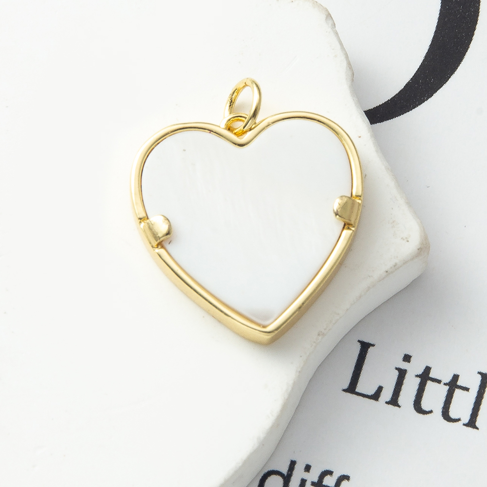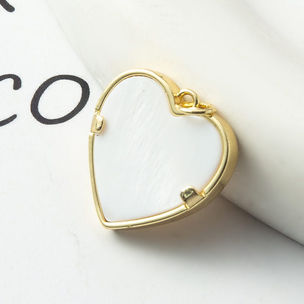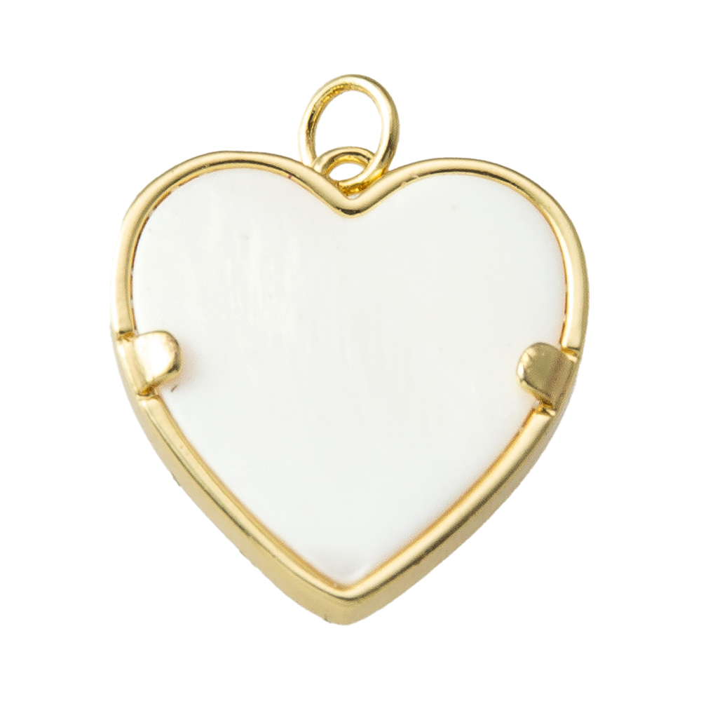 Messing Herz Anhänger, mit Weiße Muschel, plattiert, Modeschmuck, goldfarben, frei von Nickel, Blei & Kadmium, 19x4x23mm, verkauft von PC
