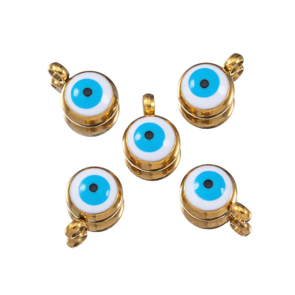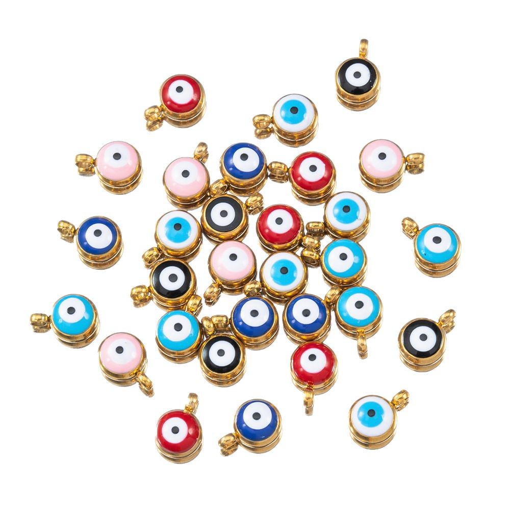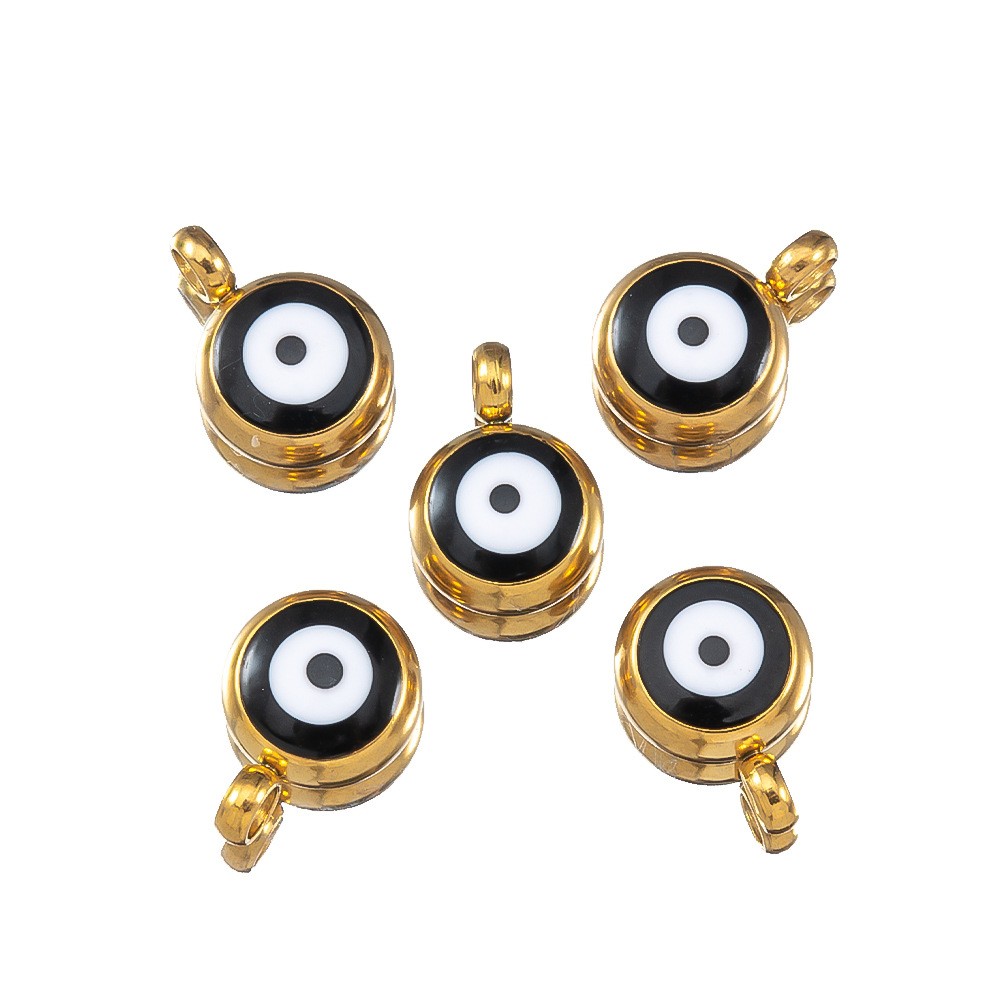 Evil Eye Anhänger, 304 Edelstahl, rund, goldfarben plattiert, DIY & Emaille, keine, 10PCs/Tasche, verkauft von Tasche