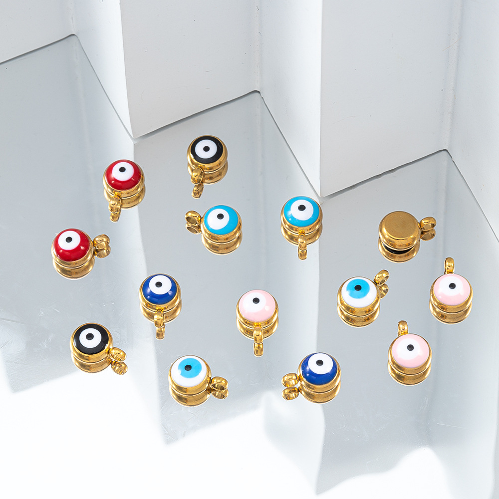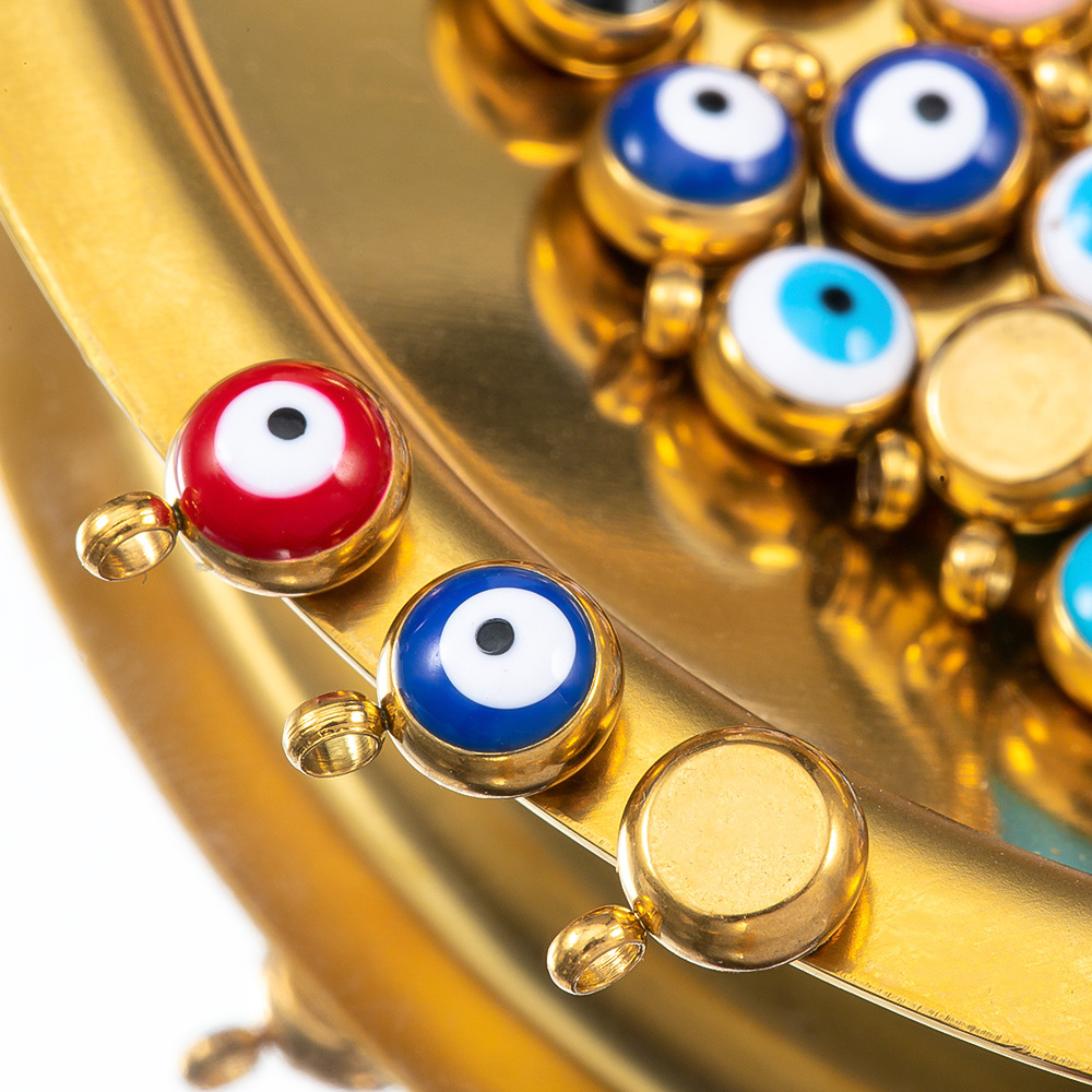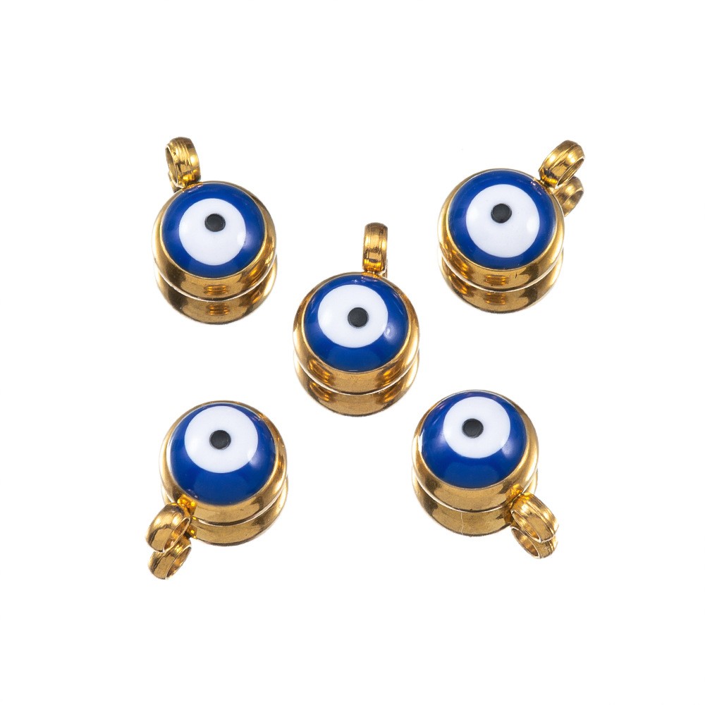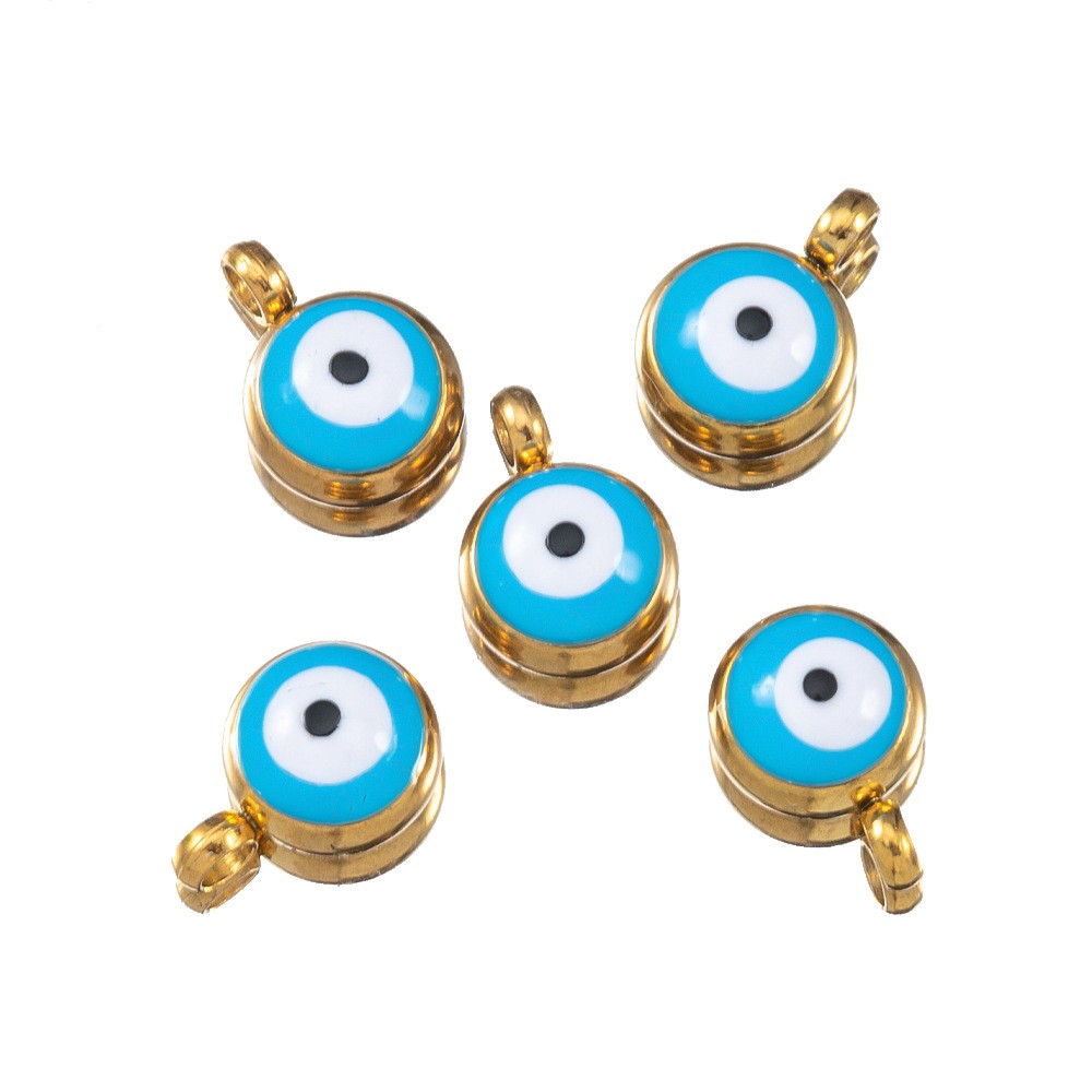 Evil Eye Anhänger, 304 Edelstahl, rund, goldfarben plattiert, DIY & Emaille, keine, 10PCs/Tasche, verkauft von Tasche