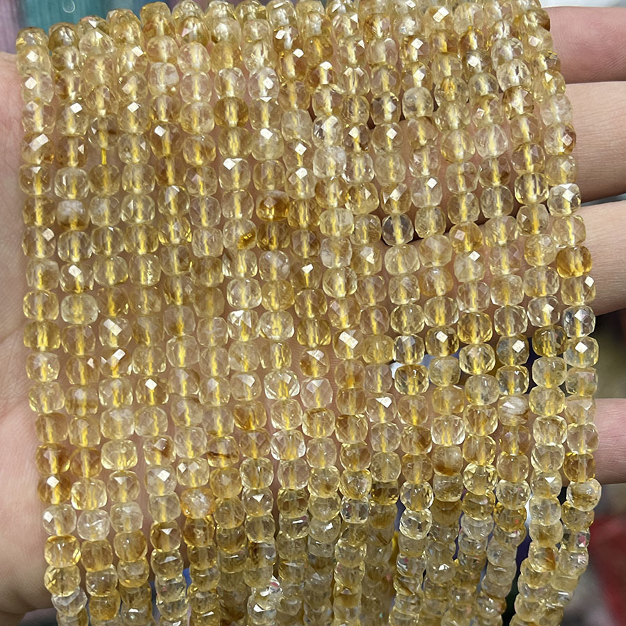 Natürlicher Citrin Perlen, Gelbquarz Perlen, Quadrat, DIY, gelb, 4.60mm, verkauft per ca. 38 cm Strang