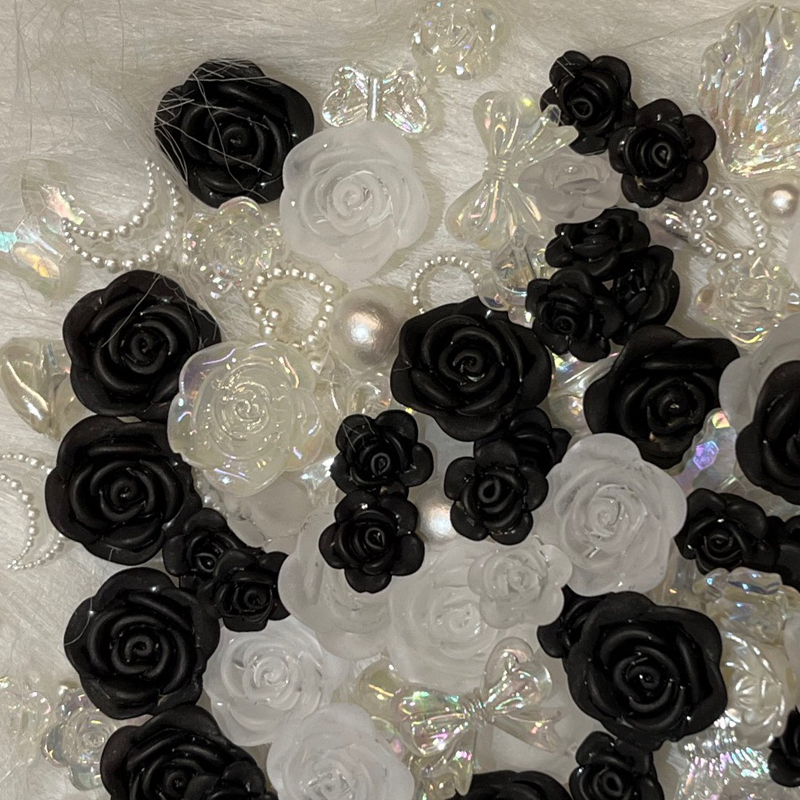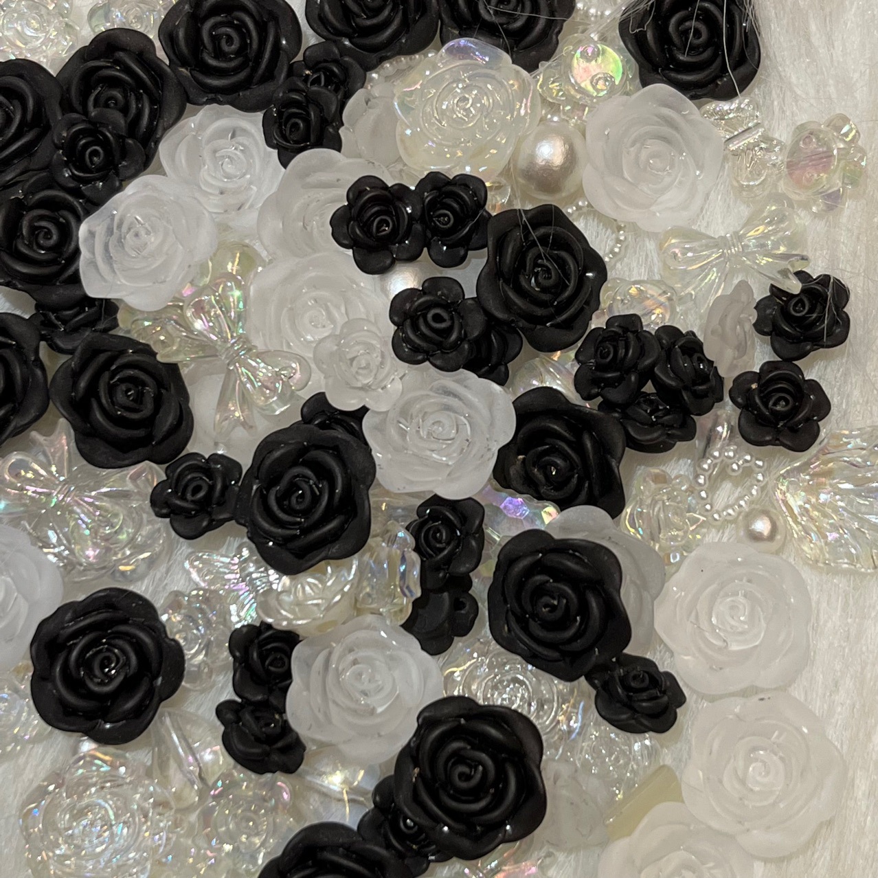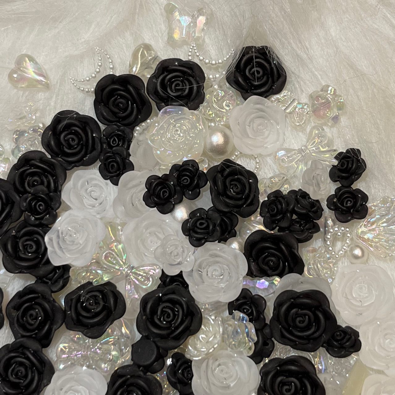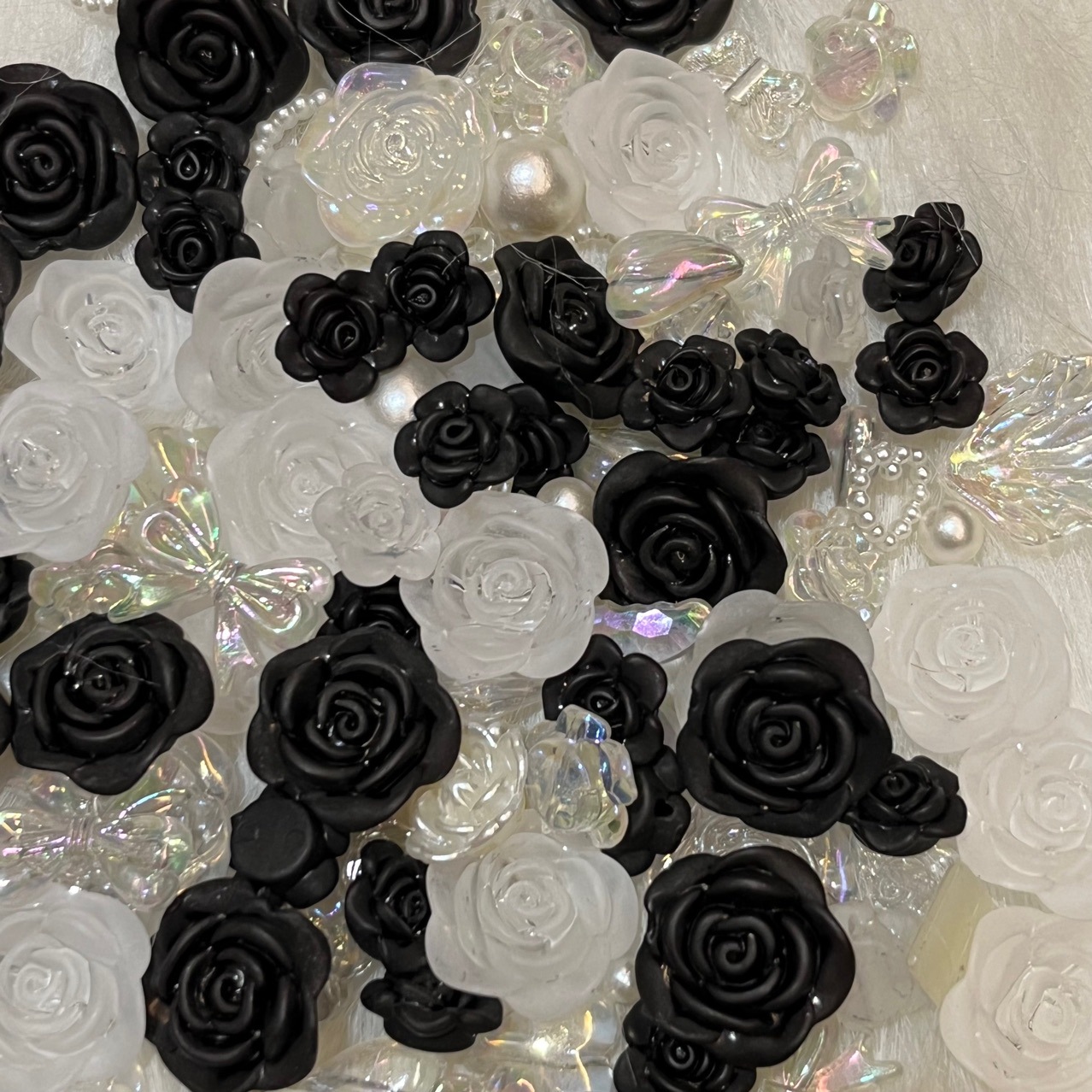 Harz Schmuckperlen, gemischtes Muster & DIY & satiniert, weiß und schwarz, beads length 20-35mm, verkauft von G