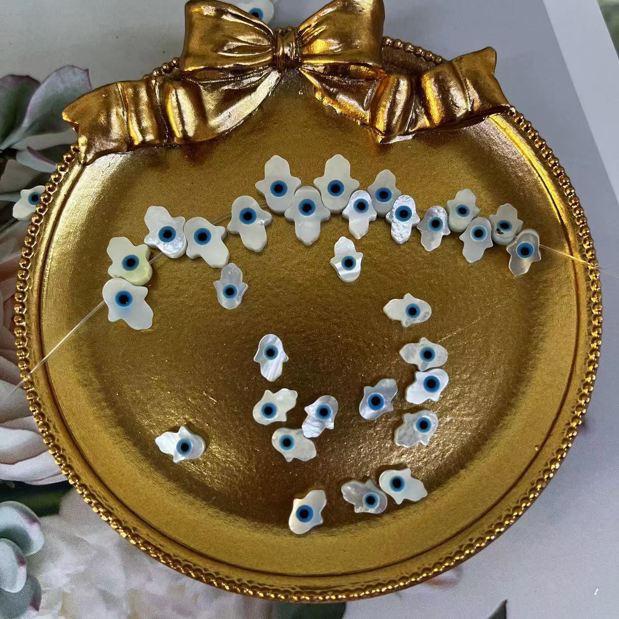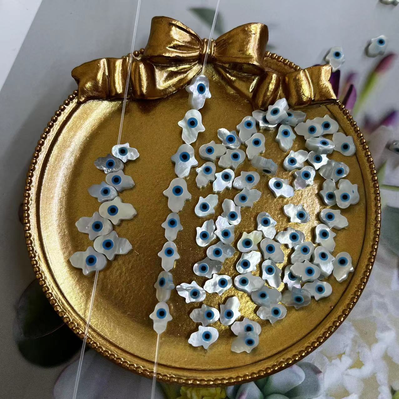 Mode Evil Eye Schmuck Perlen, Weiße Lippenschale, Hand, DIY & verschiedene Größen vorhanden & verschiedene Stile für Wahl & Emaille, keine, verkauft von PC