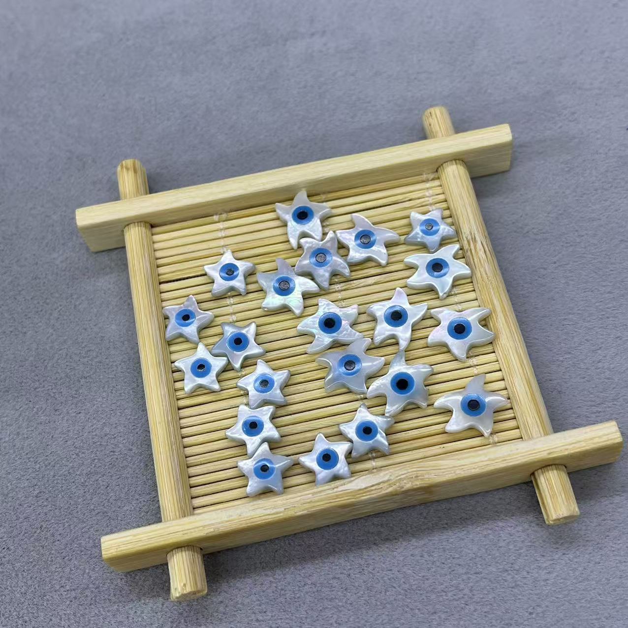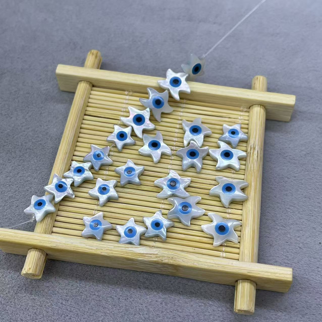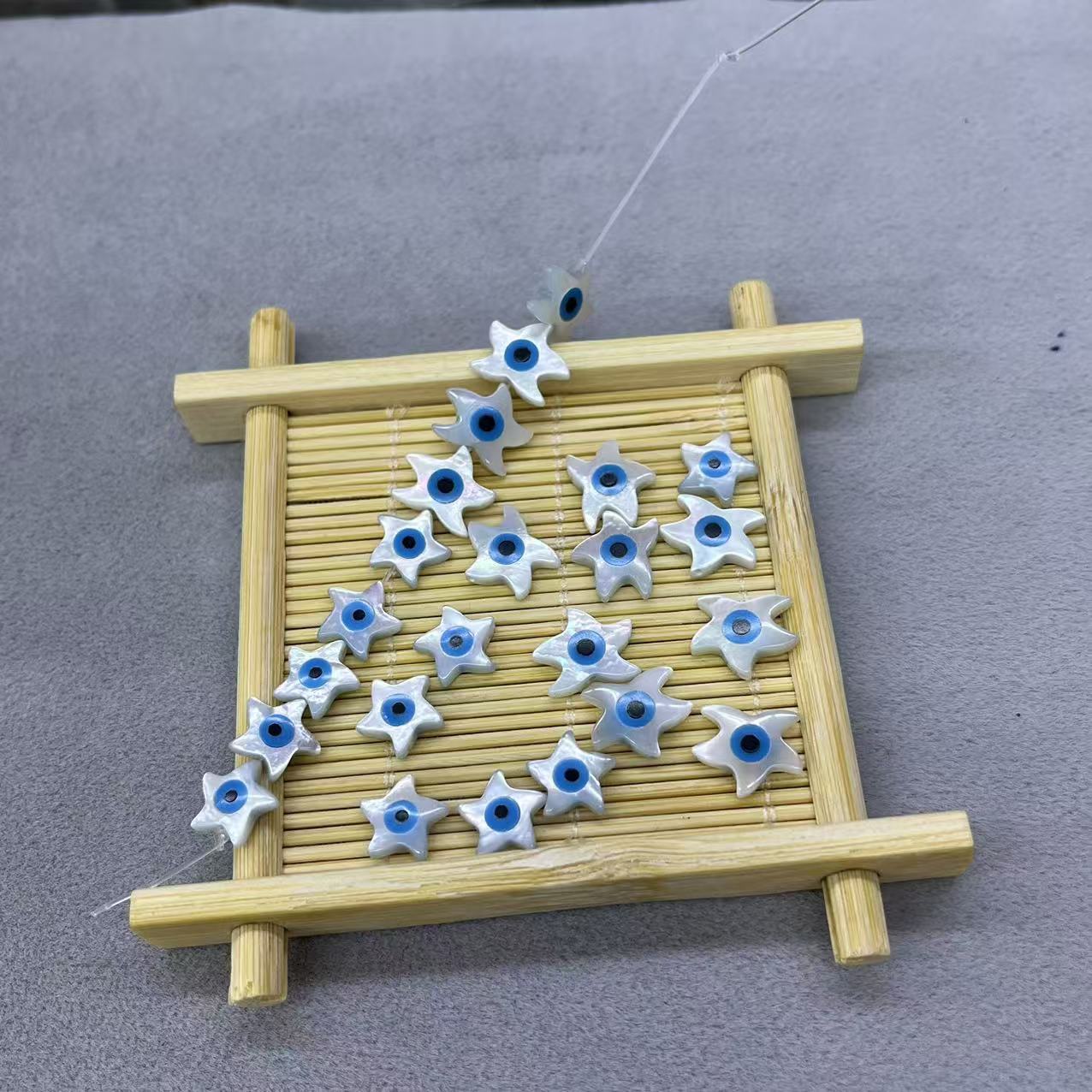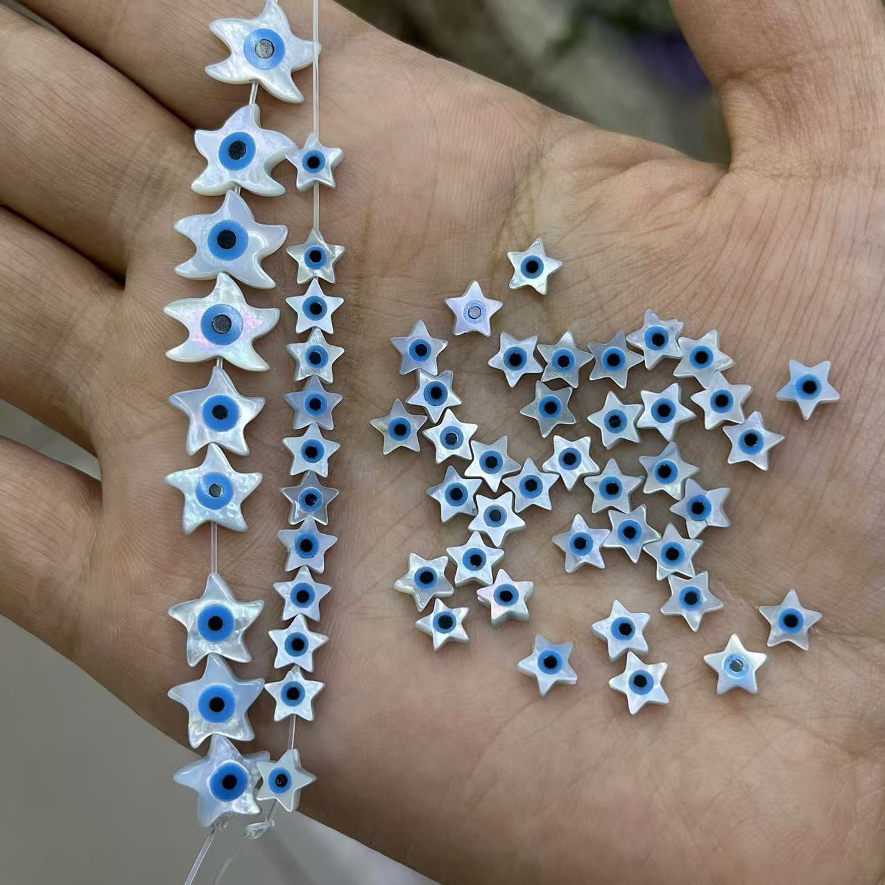Mode Evil Eye Schmuck Perlen, Weiße Lippenschale, Stern, DIY & verschiedene Größen vorhanden, keine, verkauft von Strang