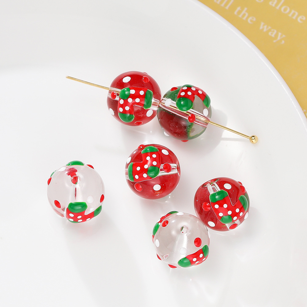 Weihnachten Lampwork Perlen, rund, DIY, keine, 12x13.50mm, 5PCs/Tasche, verkauft von Tasche