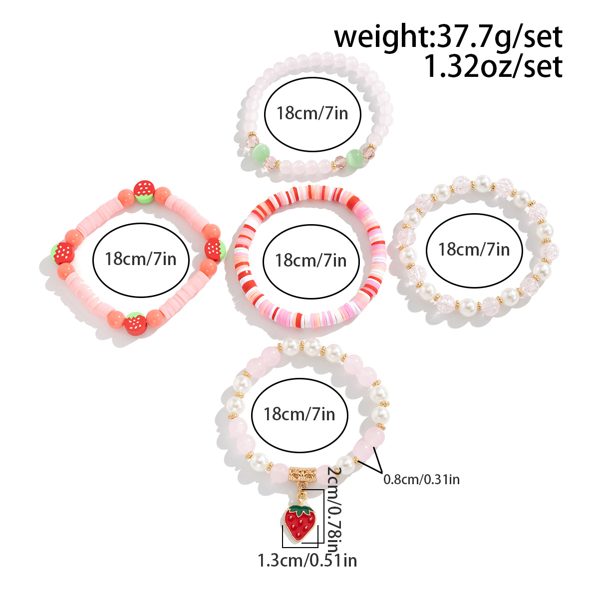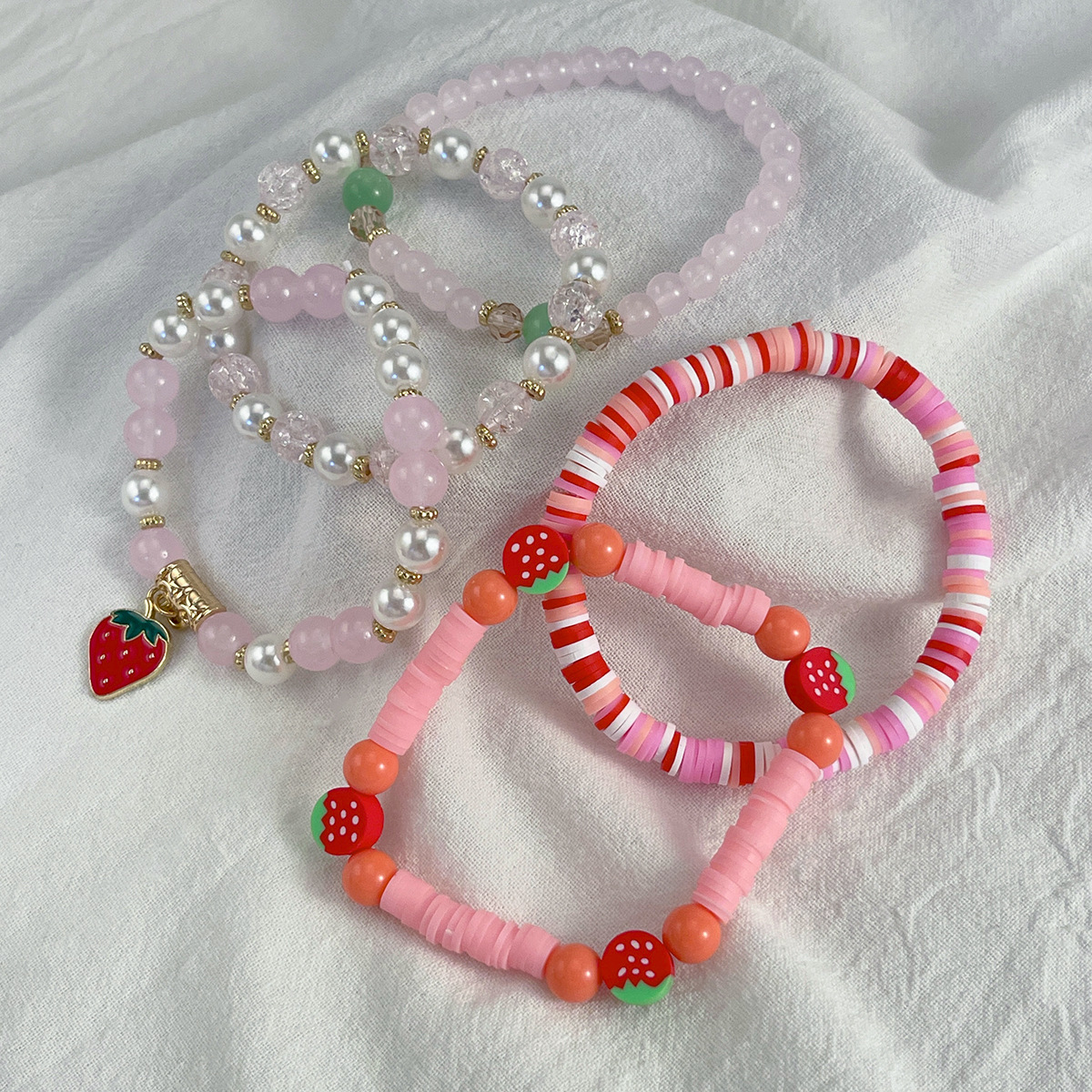 Polymer Ton Armband, mit Verkupferter Kunststoff & Kunststoff Perlen & Zinklegierung & Acryl, 5 Stück & Modeschmuck & Emaille, gemischte Farben, verkauft von setzen