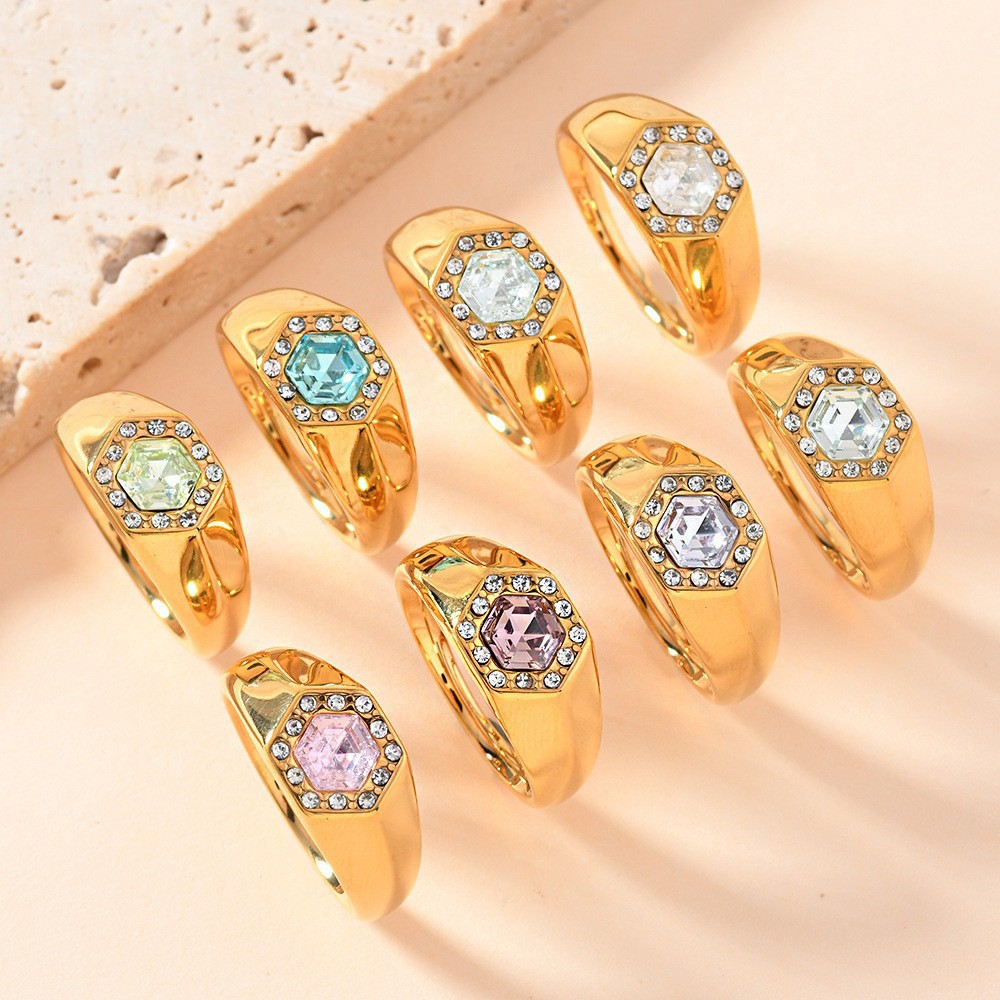 Rhinestone-Edelstahl -Finger-Ring, 304 Edelstahl, goldfarben plattiert, unisex & verschiedene Größen vorhanden & mit Strass, keine, verkauft von PC