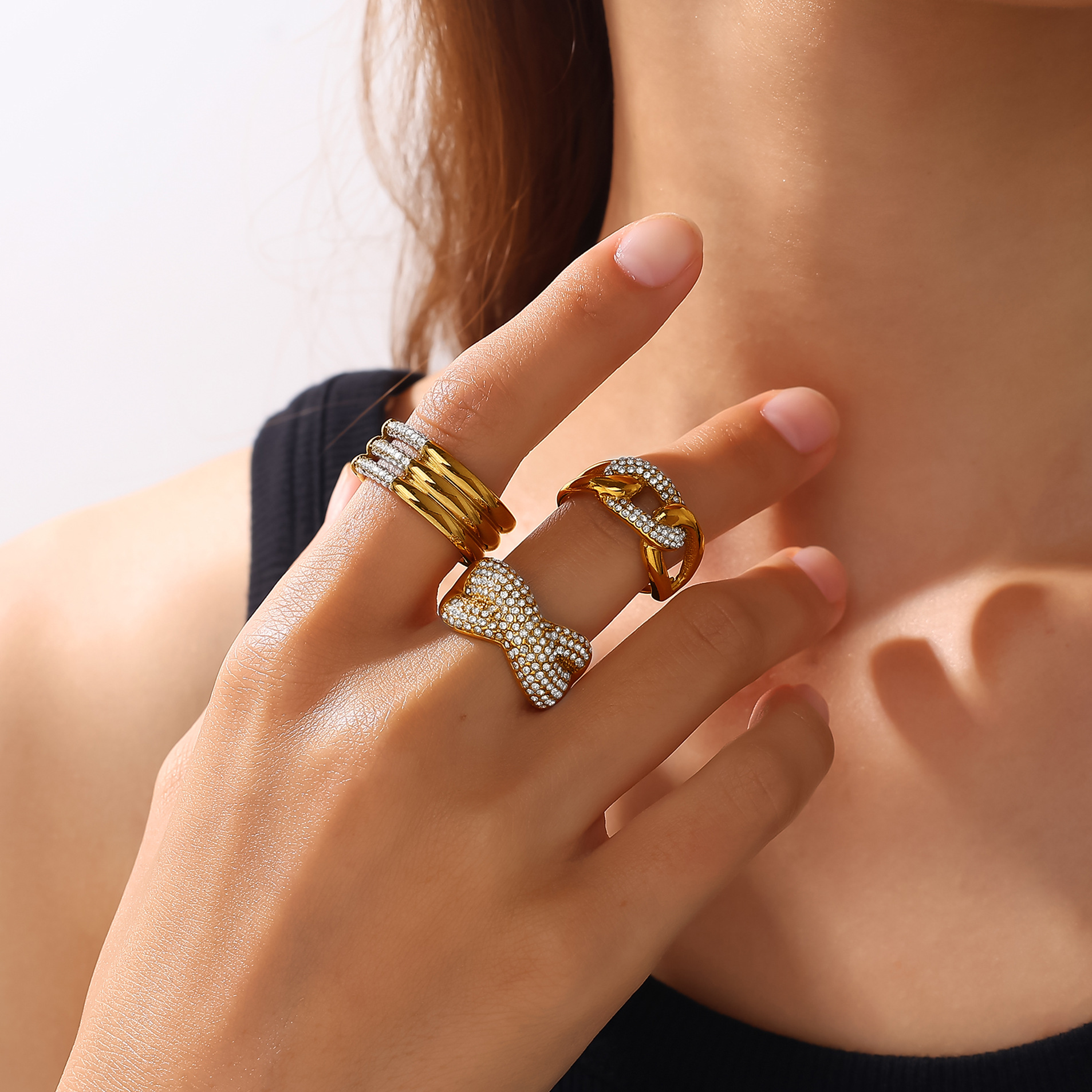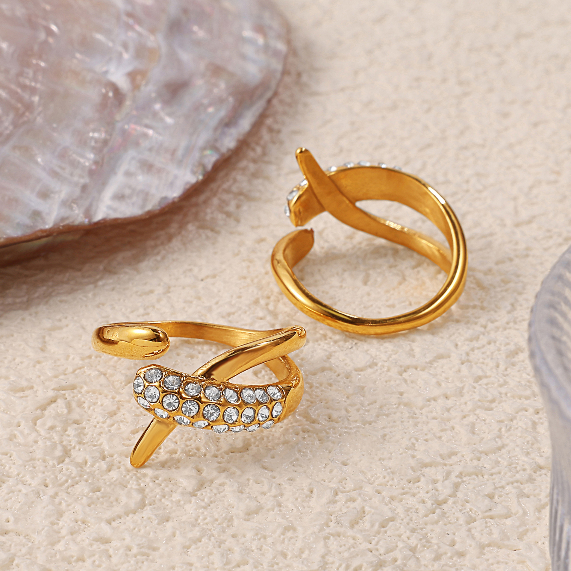 304 Edelstahl Manschette Fingerring, 18K vergoldet, verschiedene Stile für Wahl & für Frau & mit Strass, verkauft von PC