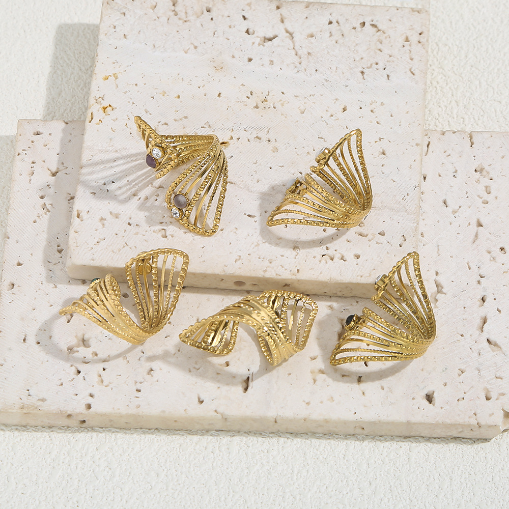304 Edelstahl Manschette Fingerring, 18K vergoldet, verschiedene Stile für Wahl & für Frau & mit Strass, verkauft von PC