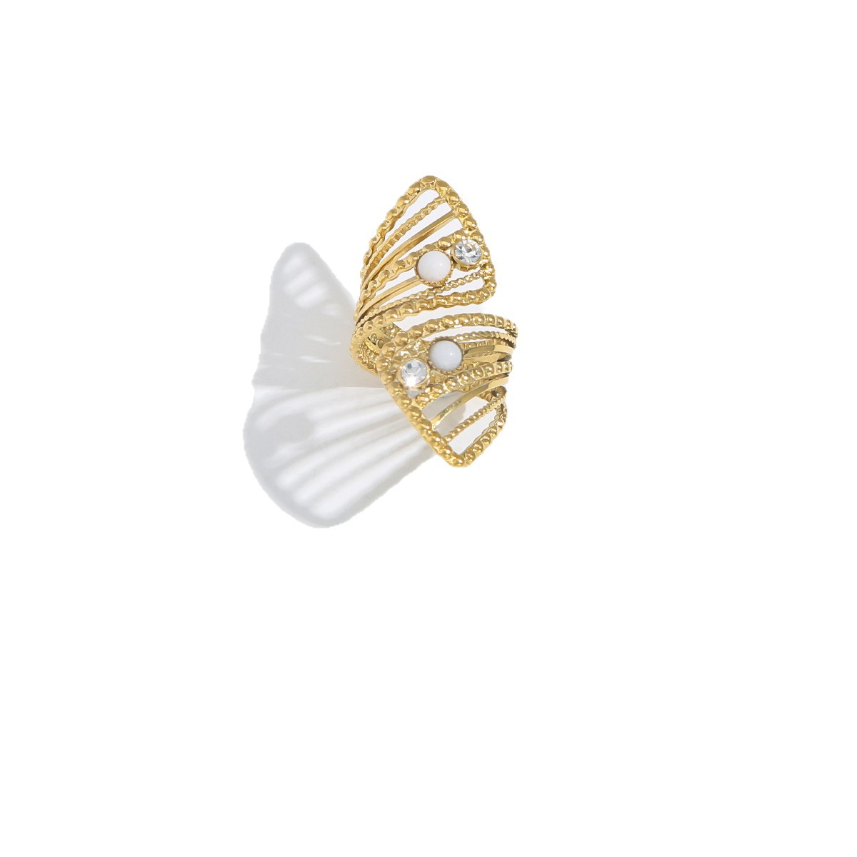 Rhinestone-Edelstahl -Finger-Ring, 304 Edelstahl, mit Naturstein, goldfarben plattiert, Modeschmuck & mit Strass, goldfarben, verkauft von PC