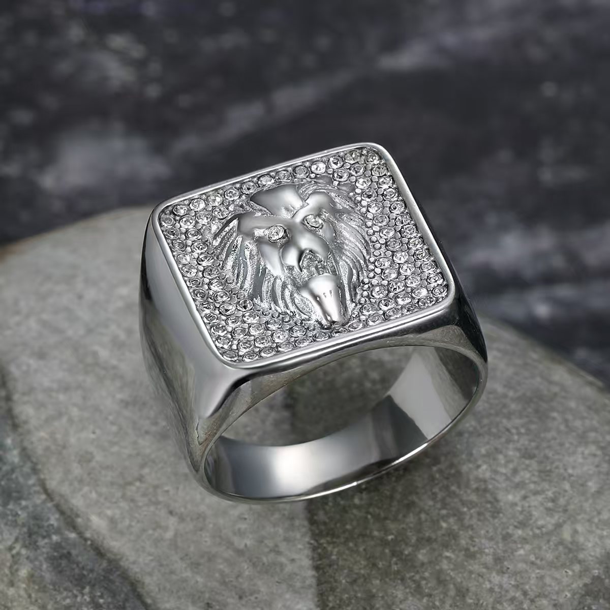 Rhinestone-Edelstahl -Finger-Ring, 304 Edelstahl, plattiert, verschiedene Größen vorhanden & für den Menschen & mit Strass, keine, verkauft von PC