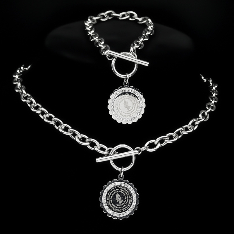 Rhinestone Edelstahl Schmuck Set, Armband & Halskette, 304 Edelstahl, plattiert, 2 Stück & für Frau & mit Strass, keine, verkauft von setzen