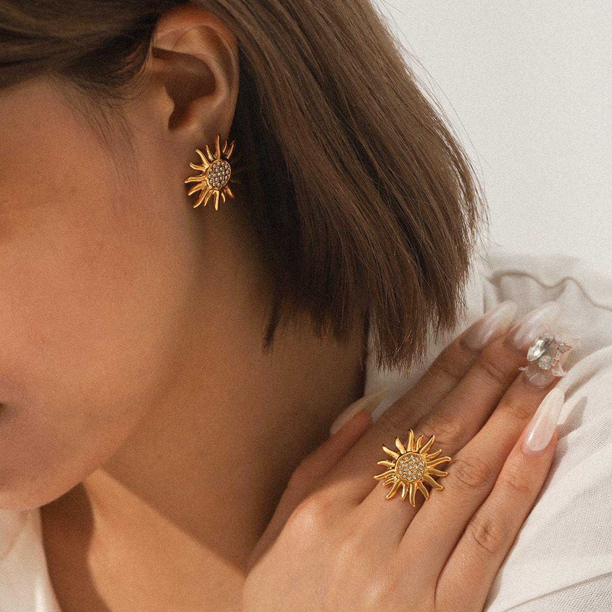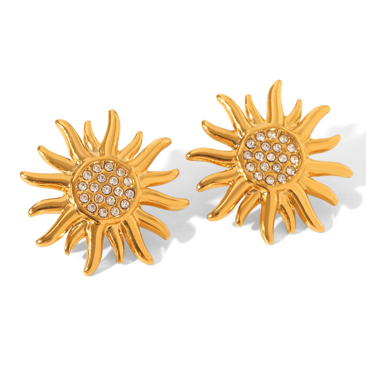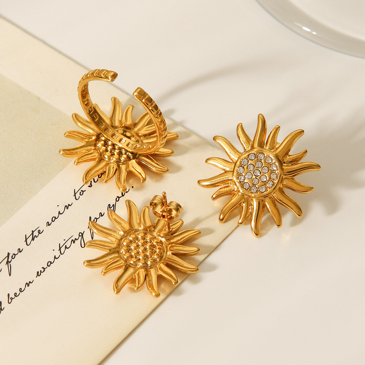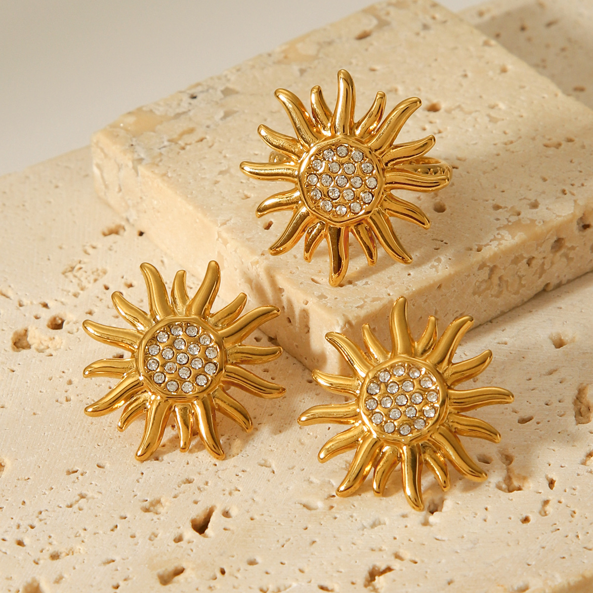 Rhinestone Edelstahl Schmuck Set, 304 Edelstahl, Sonne, plattiert, Modeschmuck & für Frau & mit Strass, goldfarben, verkauft von PC