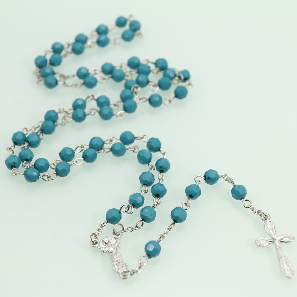Rosenkranz Kette, Zinklegierung, mit Kunststoff, Kreuz, plattiert, Modeschmuck, gemischte Farben, 6mm, Länge 47.2 cm, verkauft von PC