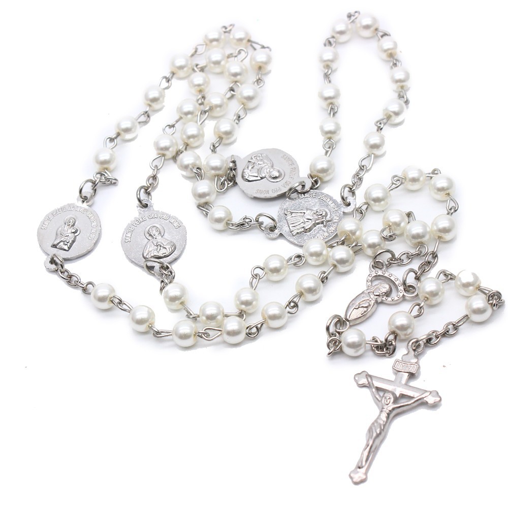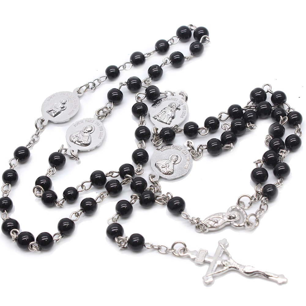 Rosenkranz Kette, Zinklegierung, mit Glas, Kreuz, silberfarben plattiert, Modeschmuck, keine, 8mm, verkauft von PC