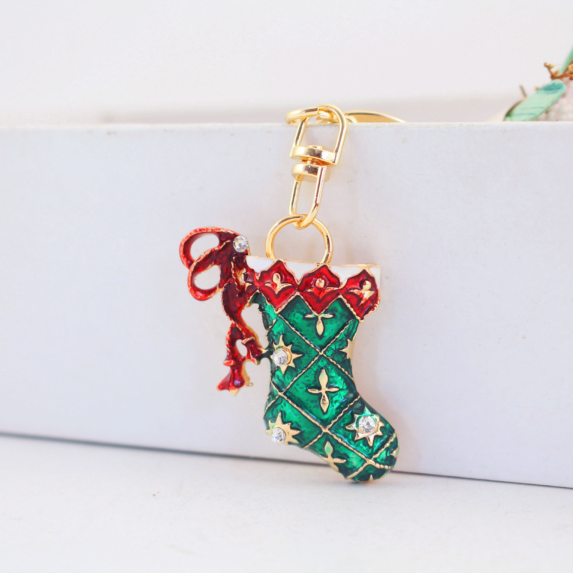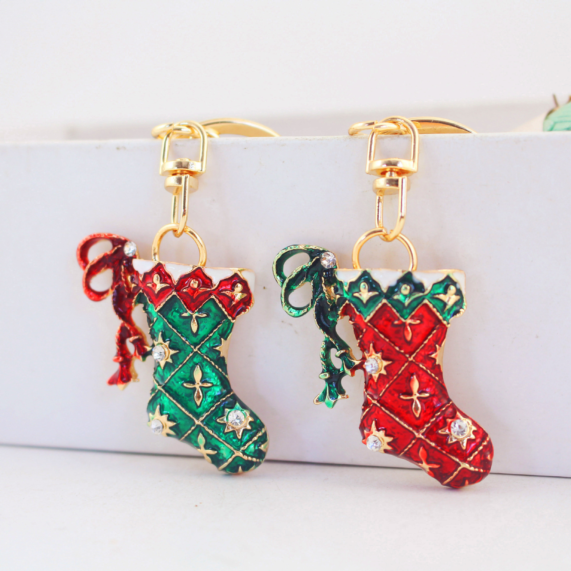 Schlüsselanhänger, Zinklegierung, Socken, goldfarben plattiert, Emaille & mit Strass, keine, 36x8x97mm, verkauft von PC