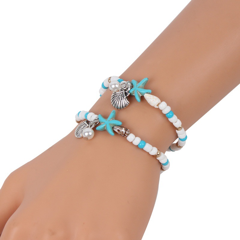 Seedbead Armband, mit Synthetische Türkis & Trompete Muschel & Kunststoff Perlen & Zinklegierung, plattiert, Modeschmuck, gemischte Farben, 225mm, Länge 22.5 cm, verkauft von PC