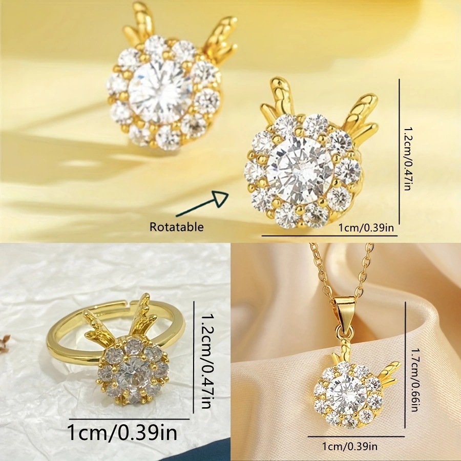 Strass-Schmuck-Sets, Stud Ohrring & Fingerring & Halskette, Zinklegierung, Geweihe, plattiert, Modeschmuck & mit Strass, keine, verkauft von setzen