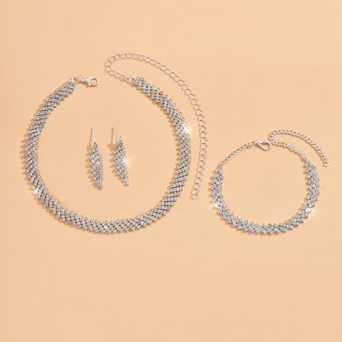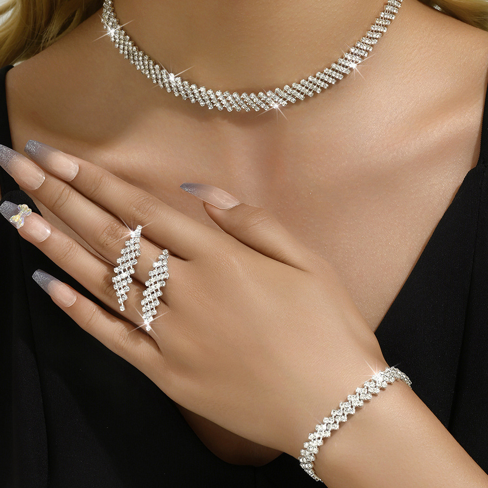 Strass-Schmuck-Sets, Fingerring & Armband & Halskette, Strass, goldfarben plattiert, Modeschmuck, Silberfarbe, 170x120x10mm, Bohrung:ca. 1mm, verkauft von PC