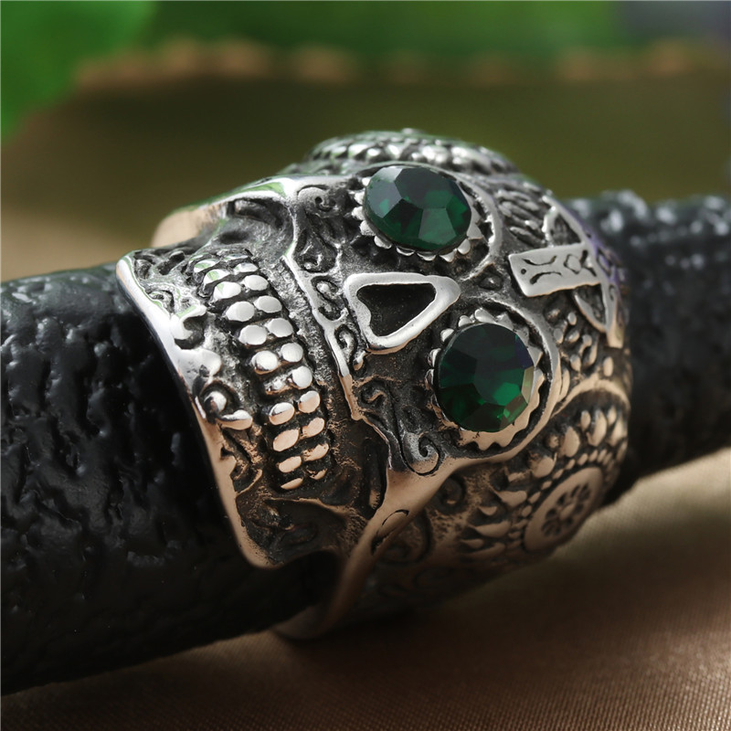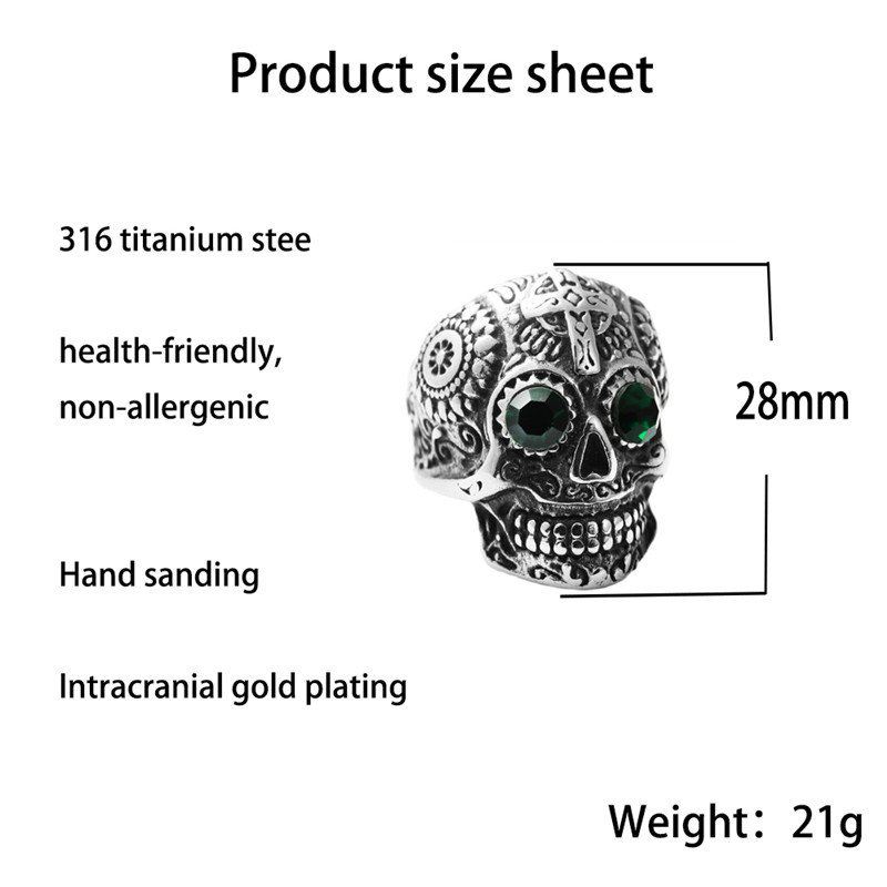 Rhinestone-Edelstahl -Finger-Ring, 316 Edelstahl, Schädel, poliert, verschiedene Größen vorhanden & für den Menschen & mit Strass, Silberfarbe, verkauft von PC