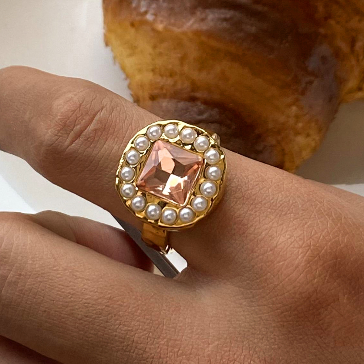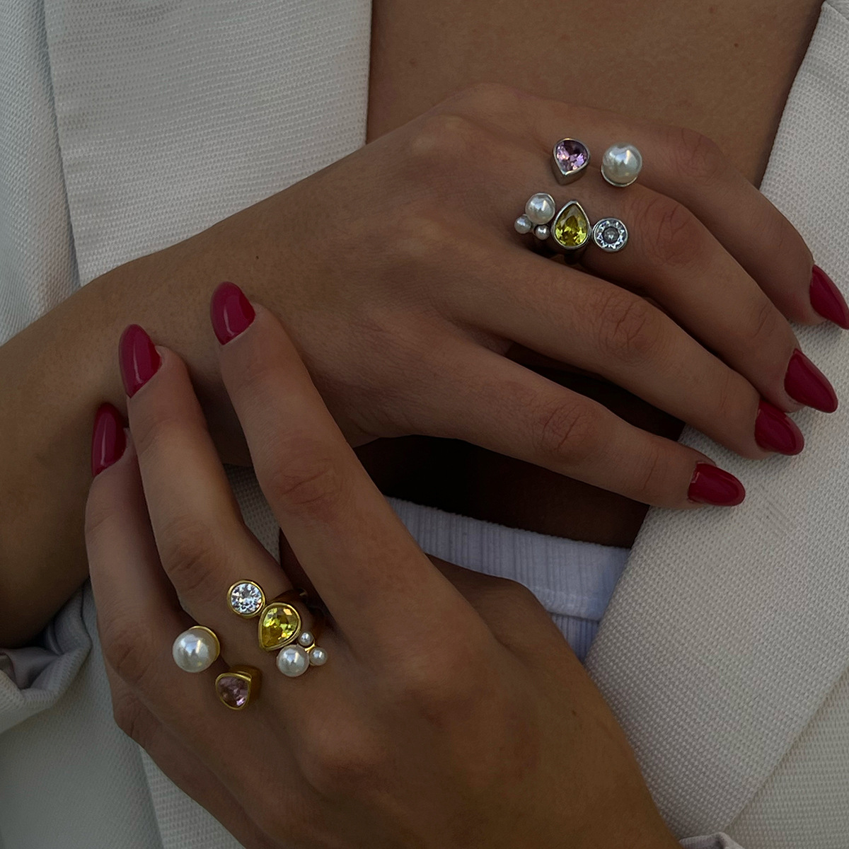 Rhinestone-Edelstahl -Finger-Ring, 304 Edelstahl, mit Kunststoff Perlen, plattiert, verschiedene Stile für Wahl & für Frau & mit Strass, verkauft von PC