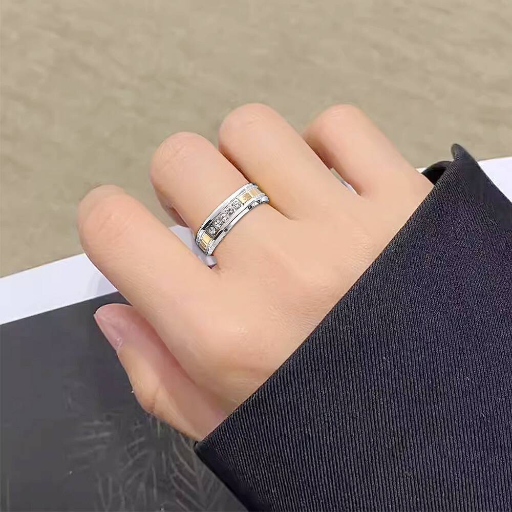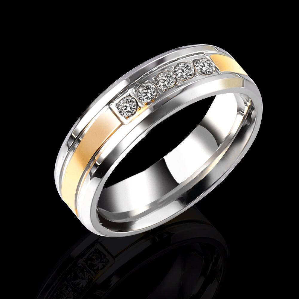 Rhinestone-Edelstahl -Finger-Ring, 304 Edelstahl, plattiert, verschiedene Größen vorhanden & für den Menschen & mit Strass, keine, verkauft von PC