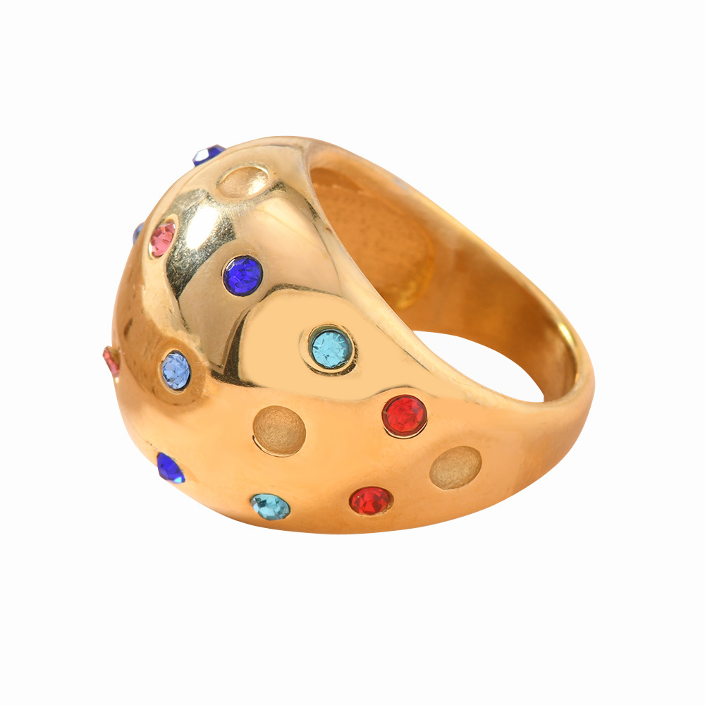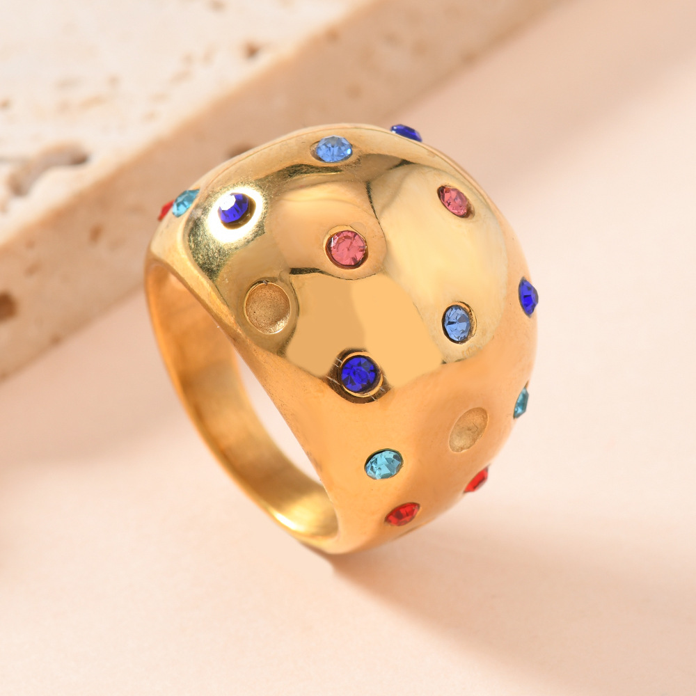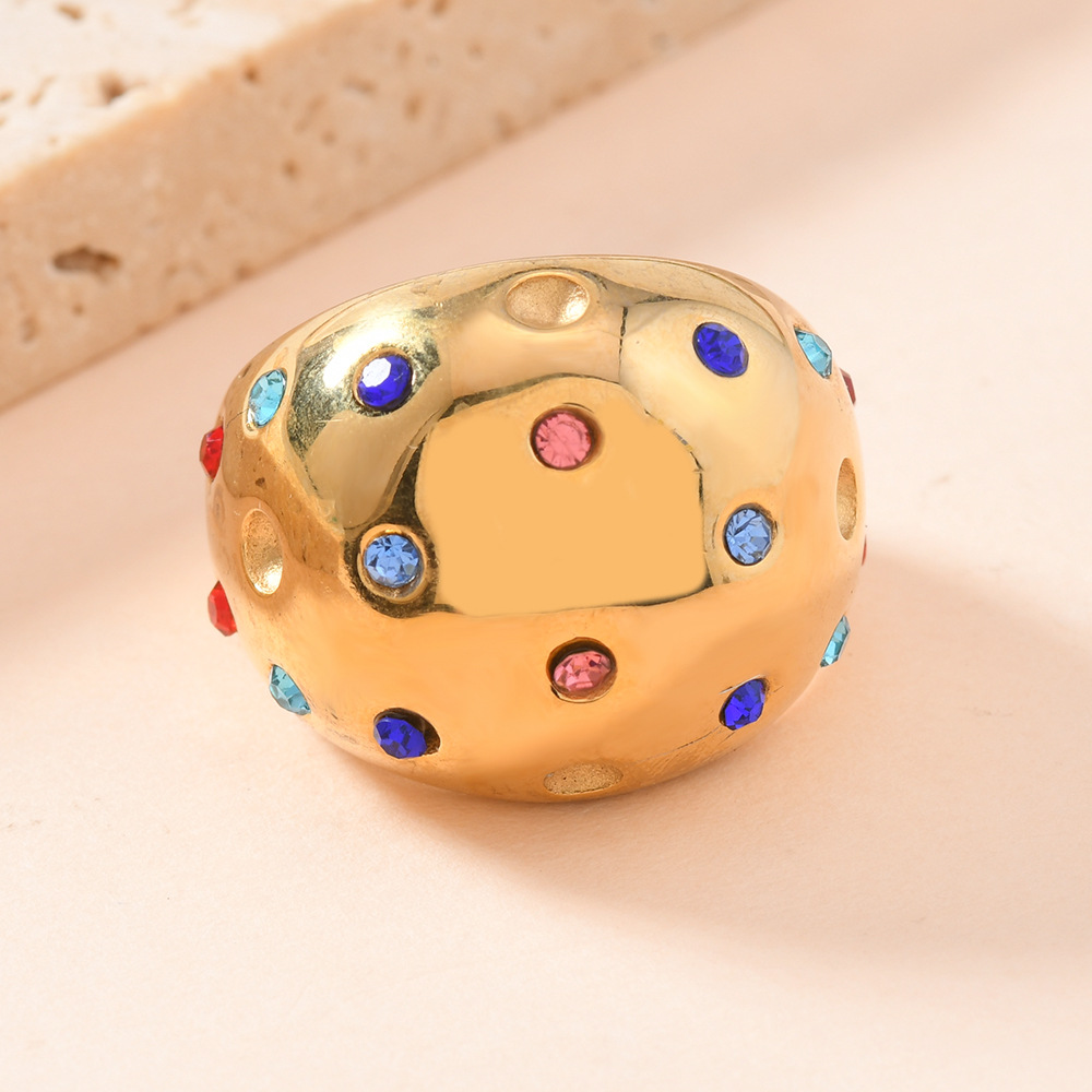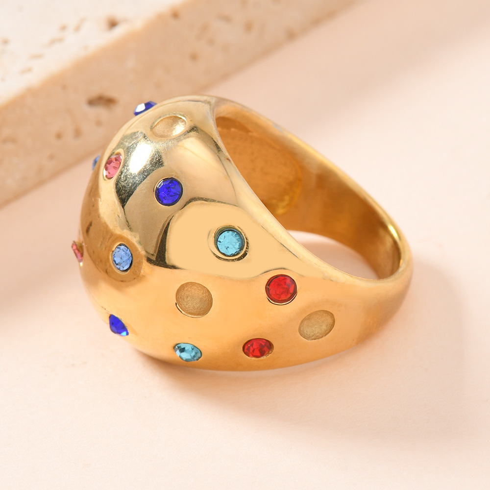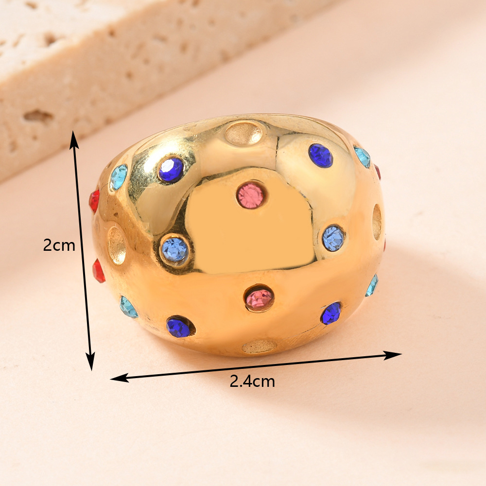 Rhinestone-Edelstahl -Finger-Ring, 304 Edelstahl, plattiert, Modeschmuck & für Frau & mit Strass, goldfarben, Größe:8, verkauft von PC