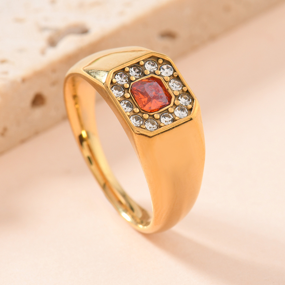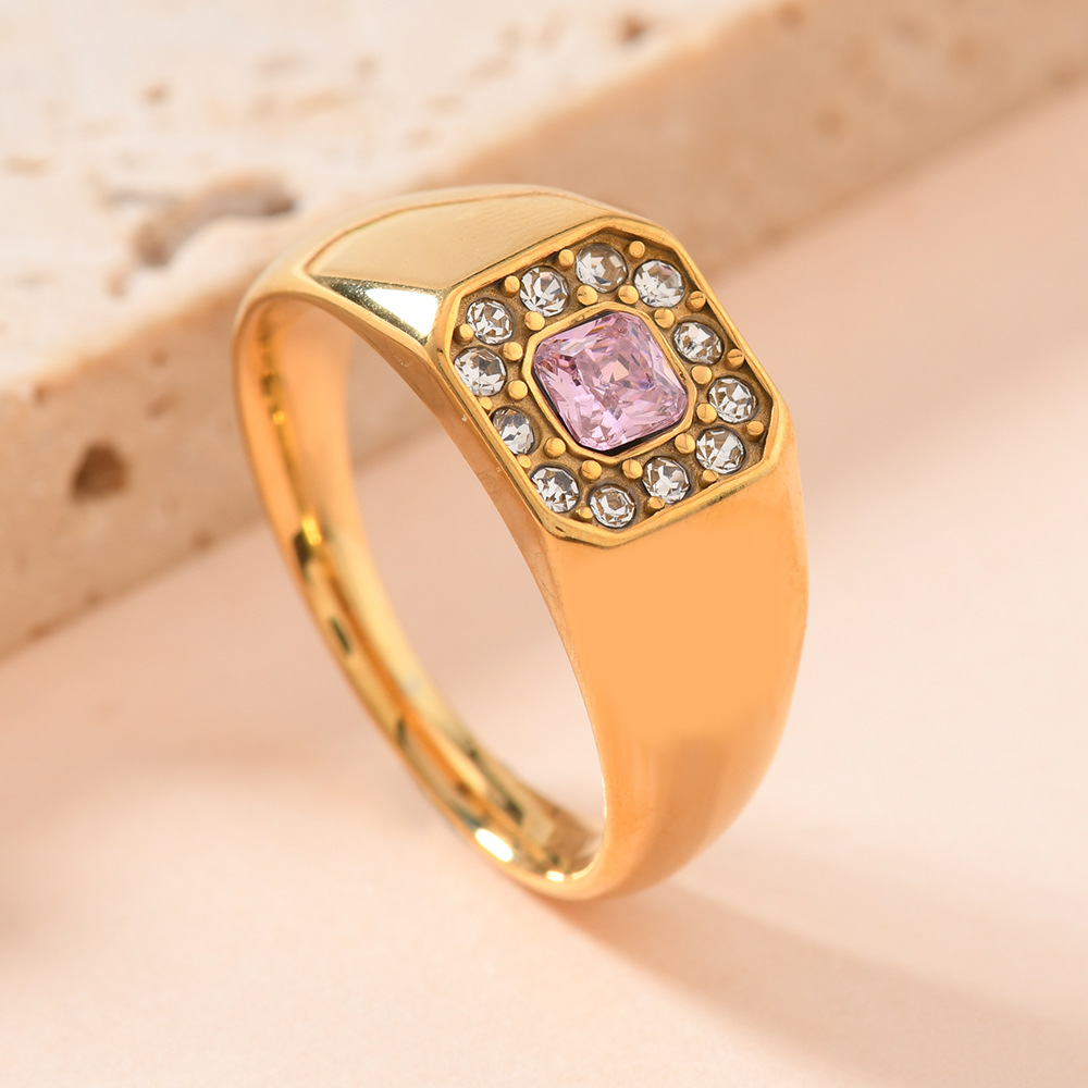 Rhinestone-Edelstahl -Finger-Ring, 304 Edelstahl, goldfarben plattiert, unisex & verschiedene Größen vorhanden & mit Strass, keine, verkauft von PC