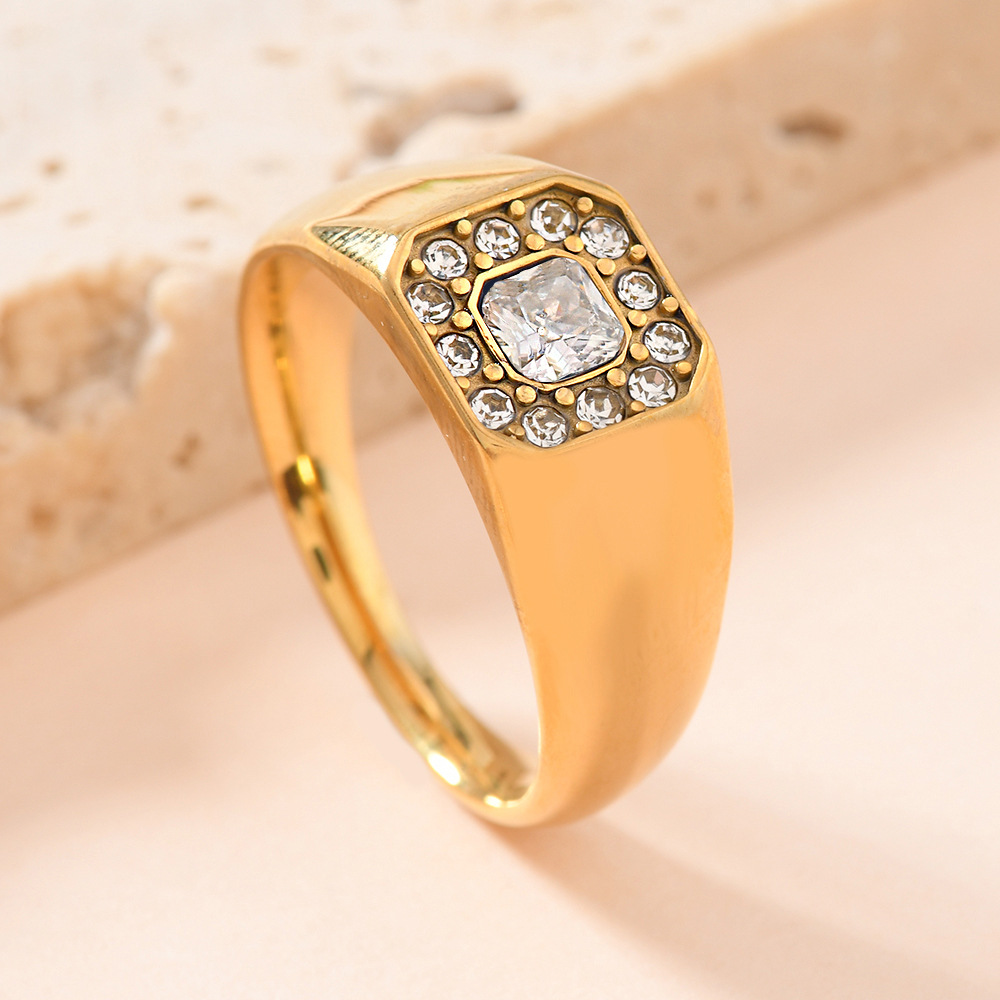 Rhinestone-Edelstahl -Finger-Ring, 304 Edelstahl, plattiert, verschiedene Größen vorhanden & für den Menschen & mit Strass, keine, verkauft von PC