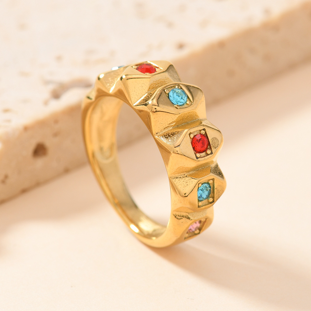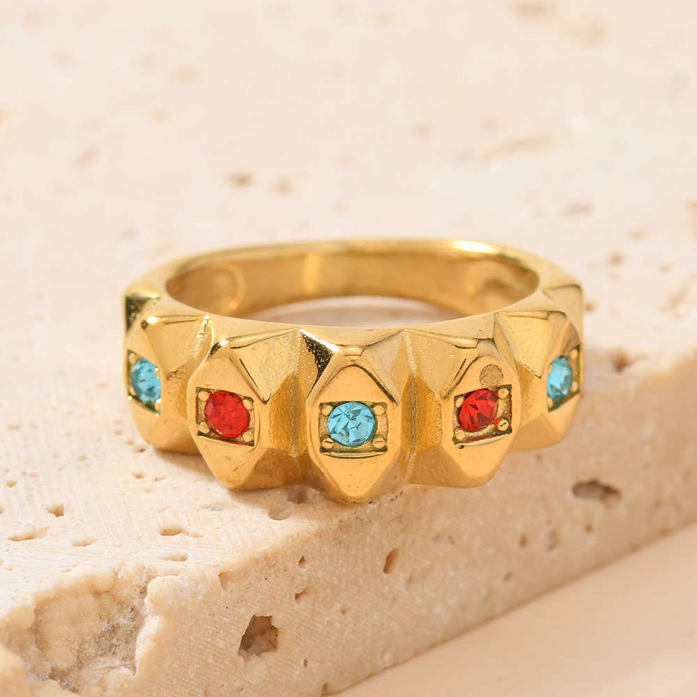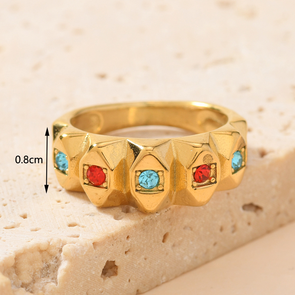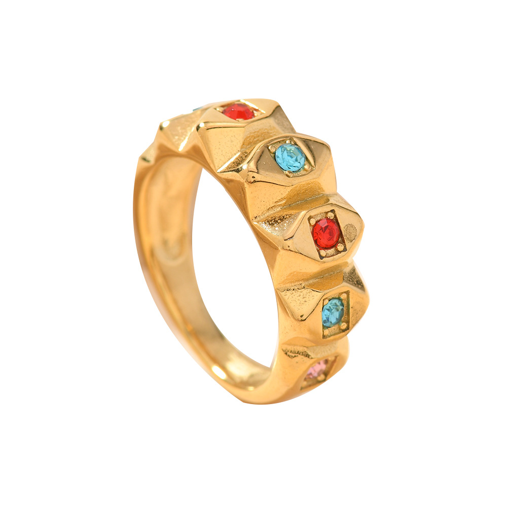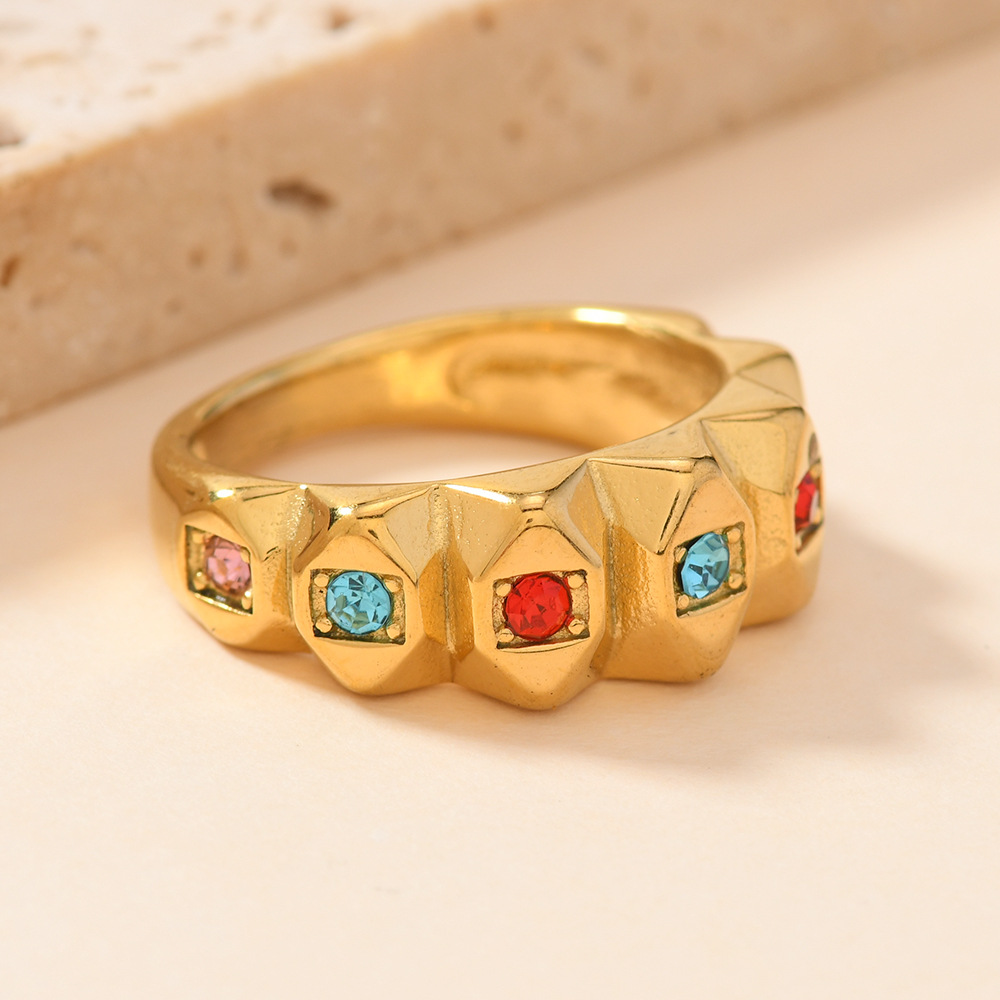 Rhinestone-Edelstahl -Finger-Ring, 304 Edelstahl, plattiert, Modeschmuck & für Frau & mit Strass, goldfarben, verkauft von PC